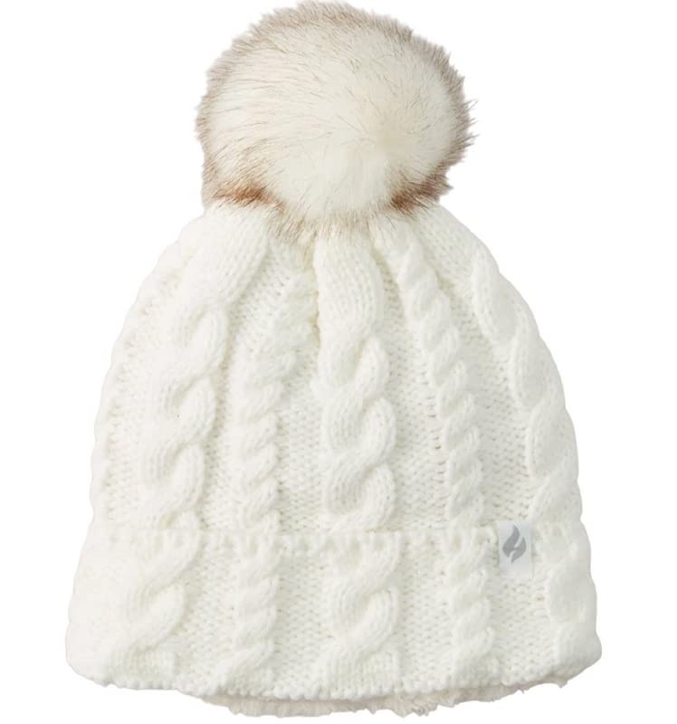 This Womens Heat Holders chunky cable hat is knitted in an attractive, soft yarn with a roll up cuff, faux fur pom pom and incorporates the latest HeatWeaver thermal lining, a luxurious, plush fur-like insulating fabric, that maximizes the amount of warm air held close to the skin.