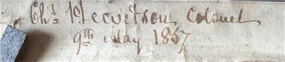 In the margin of each sheet, written in ink is: Chas. Hewetson, Colonel, 9th May, 1857. Hewetson was with the 5th Bengal Light Cavalry.