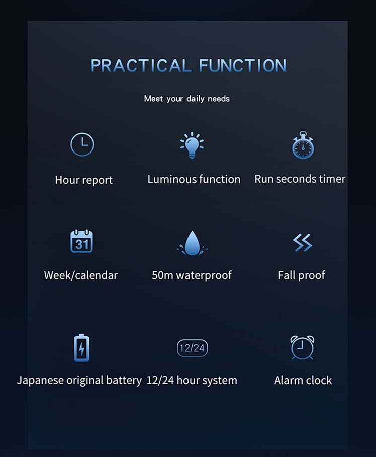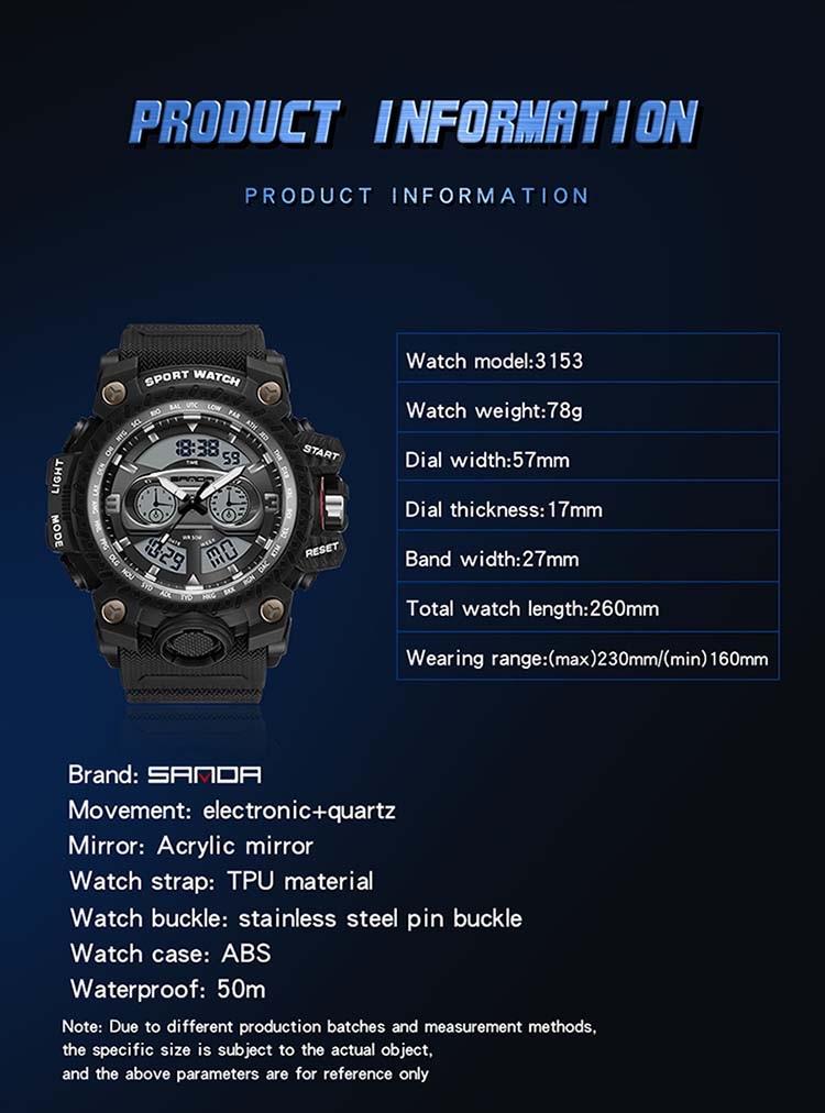 - WATCH FEATURES: Sturdy & Durable / Waterproof up to 50 m