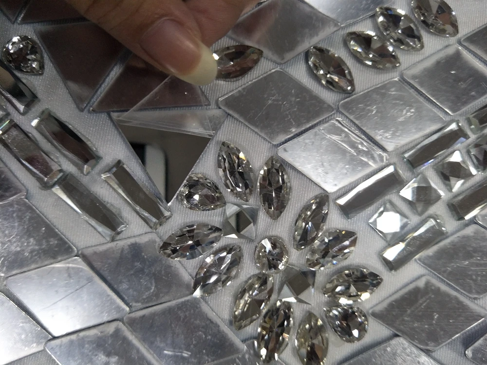 Shiny Silver Mirror Crystal Dress Women Rhinestone Dress Party Stage Costume Hot Color:multicolor size:S-2XL