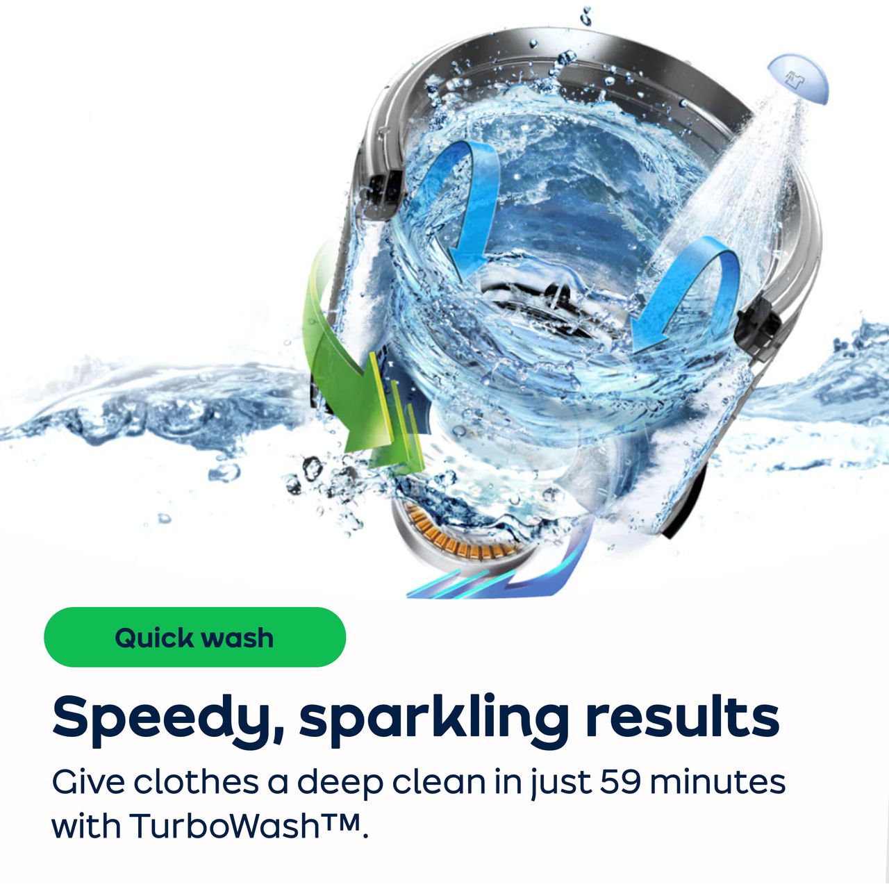 • TurboWash™ Technology – Deep clean in under an hour with powerful water jets