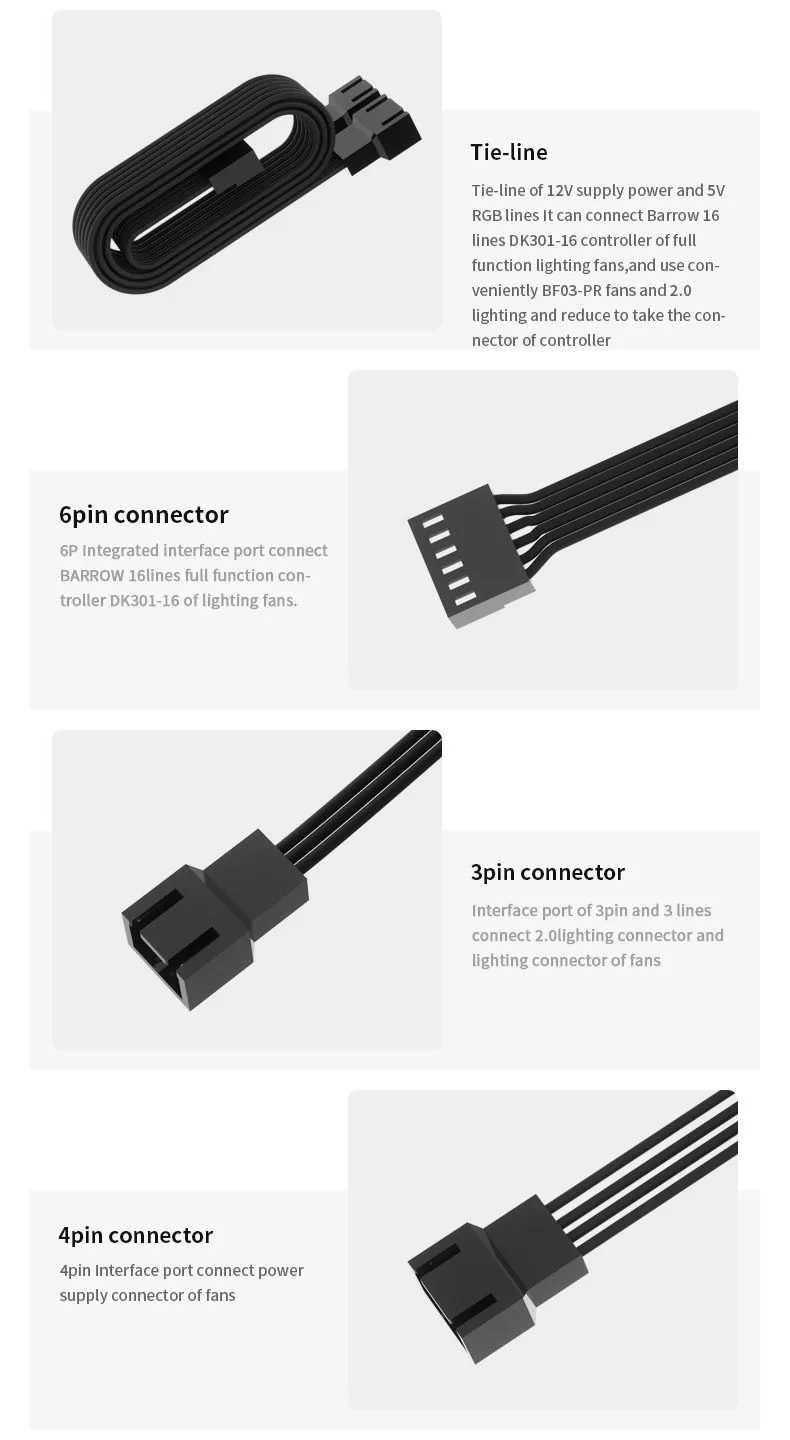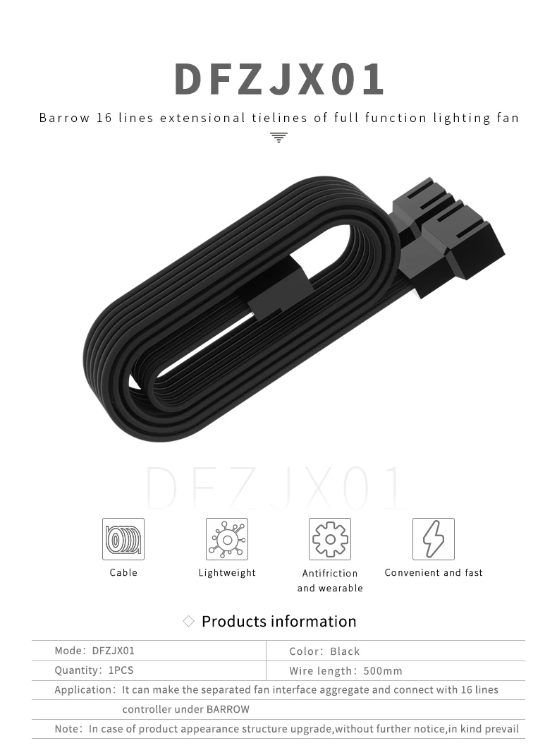 Barrow DFZJX01, LRC 2.0 16-Way Fan Lighting Extension Cables, For Barrow BF03-PR and other 2.0 Lighting To DK301-16