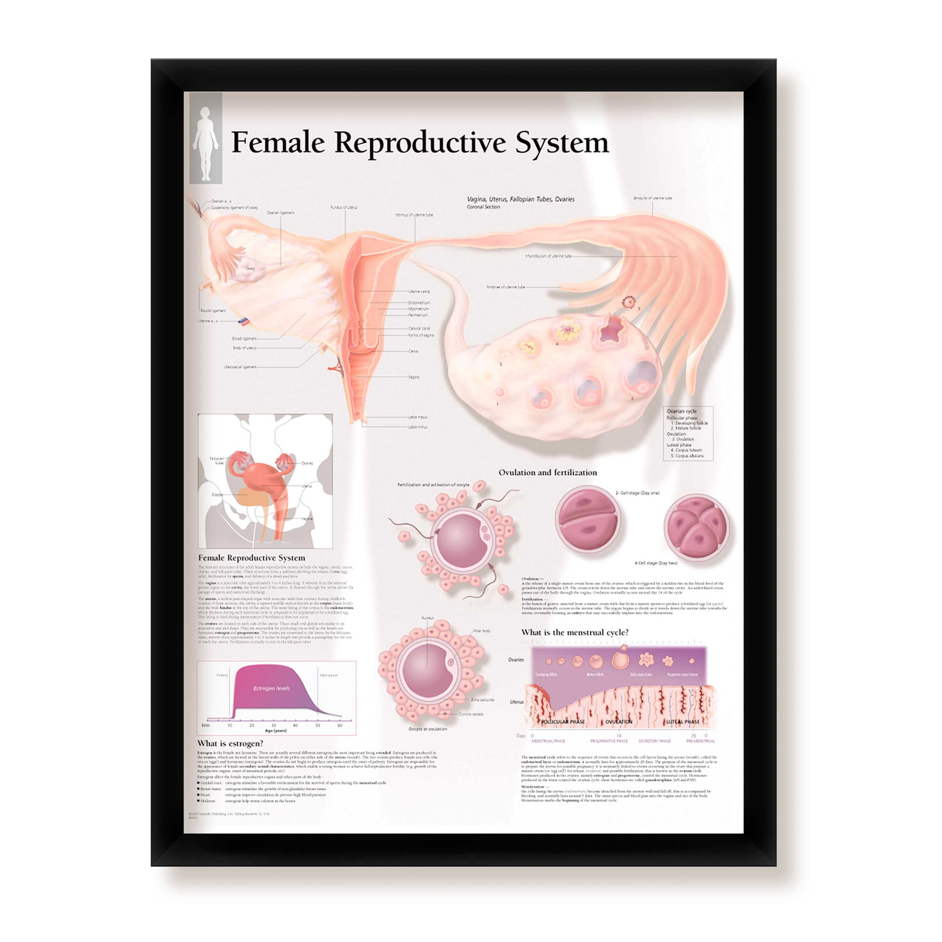 22x28 Female Reproductive System Framed Medical Informational Poster, Wall DiagramFor an extra boost of instructional decor, this convenient poster diagram by WallsThatSpeak is a great way to go. The poster measures 22" x 28" and comes ready to mount in a sleek black frame. Don’t worry about having to find a classy frame because we've got you covered. This poster is printed on high-quality, ultra thin paper stock as opposed to rough poster board or stiff cardstock. This yields a clearer, glossier image for more defined display. Each poster is printed only after an order has been placed. Because we don't mass print any of our posters, we save a fortune on paper and ink, which allows us to provide our customers with quality products at a lower cost — all while being kind to the planet. Our colorful posters feature highly detailed diagrams of the human body parts anatomy. These posters are lightweight and easy to hang. Each frame comes complete with hanging hardware and tough cardboard backing to keep the poster safe and secure from rips, wrinkles, and tears. Our frames are made with matte finish acrylic materials for a subtle, classic feel. This poster from WallsThatSpeak is perfect for any room, from office spaces and waiting rooms to classrooms at the middle and high school level or even collegiate campuses and medical schools. All of our products are printed in the United States! Get your new informational parts of the body anatomy poster today! |