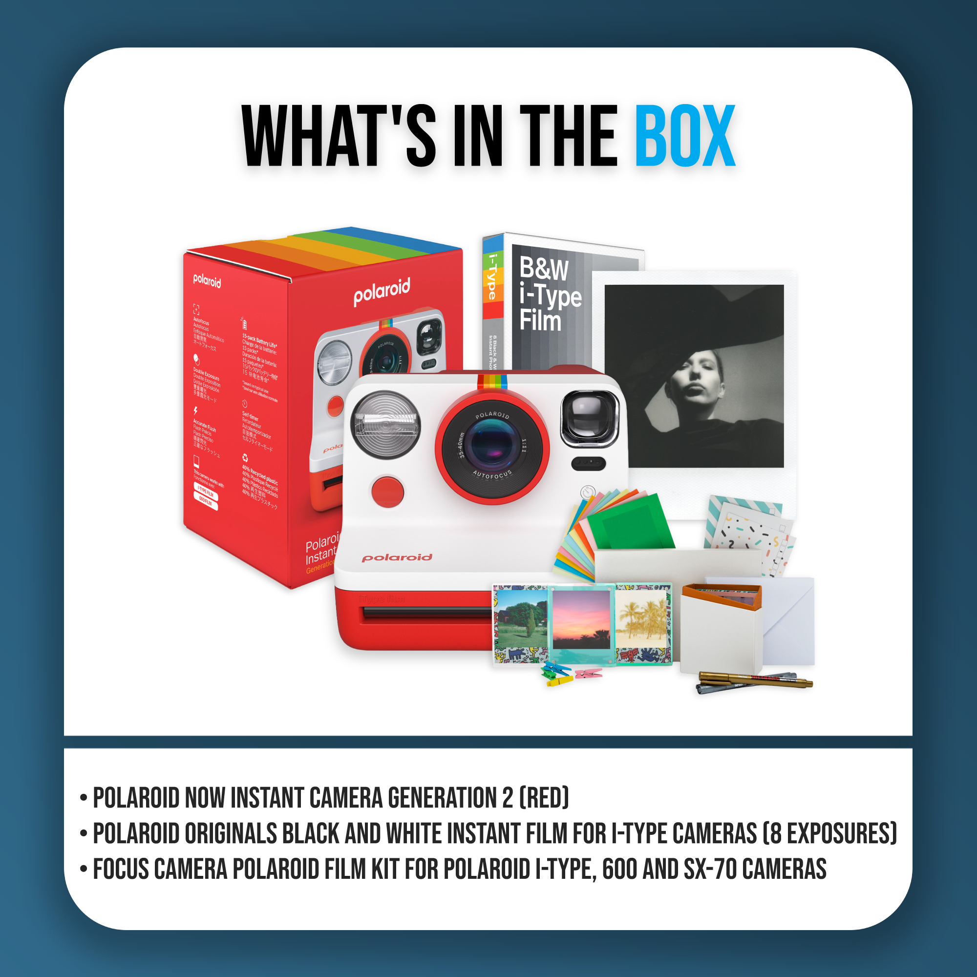 Welcome to the beautifully imperfect world of Polaroid photography with the Polaroid Now Generation 2 camera. The classic, iconic analog instant camera comes with autofocus, a self-timer, and double exposure. All in a classic design, and now made with 40% recycled materials. Compatible with Polaroid i-Type & 600 film in the original Polaroid instant film format. It has a Red finish.