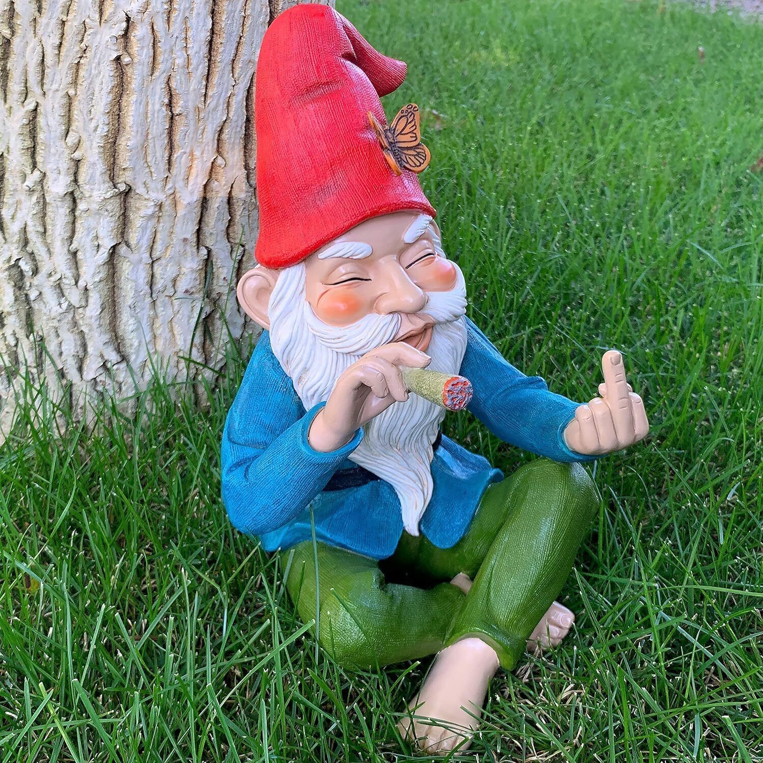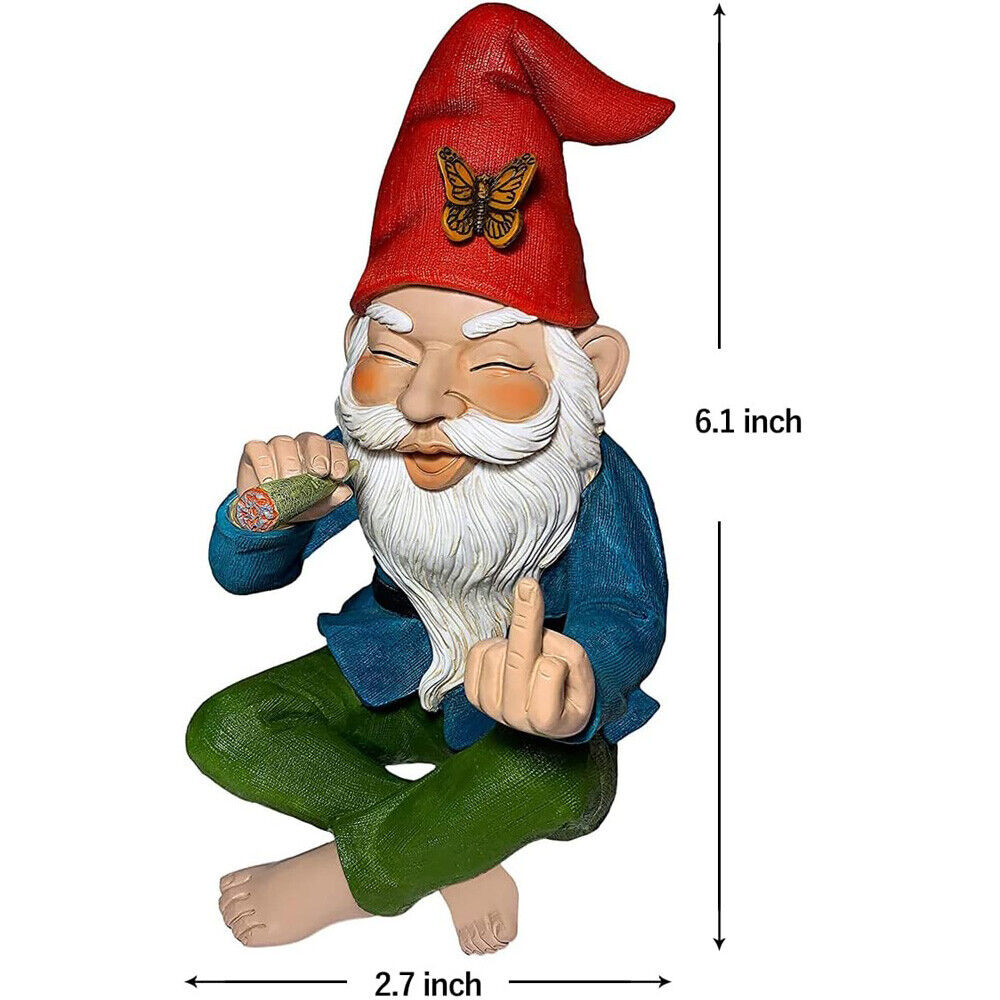 6.1" Funny Smoking Garden Gnome Statue Resin Lawn Ornament Figure Statue Decor