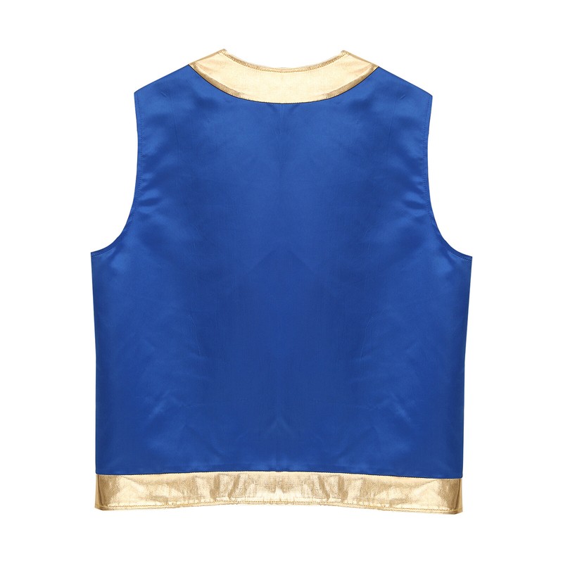 Designed with open front, sleeveless, stylish metallic shiny trim and loose fitting, contrast vest is a perfect costume for cospaly party.