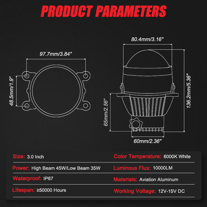 Better Distribution of Light - The fog lights lens is 3 inch, under the bigger size of the lens. Its light output can be distributed more evenly than other fog lights.