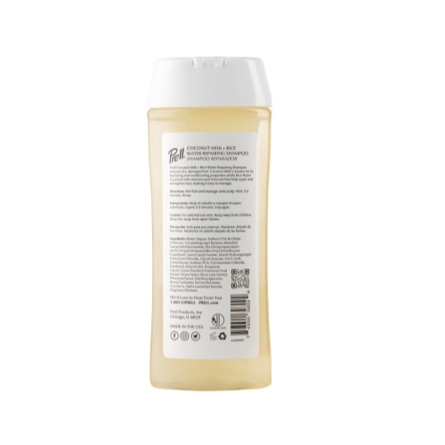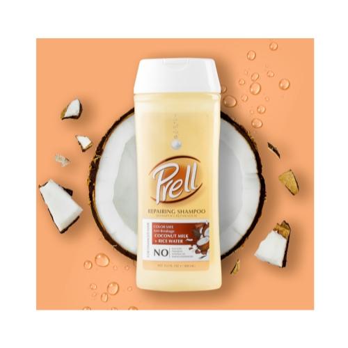 Prell Coconut Milk + Rice Water Repairing Shampoo restores dry, damaged hair. Coconut milk is known for its hydrating and conditioning properties while Rice Water is packed with vitamins and minerals that help repair and strengthen hair, making it easy to manage. DIRECTIONS: Wet hair and massage onto scalp. Wait 2-3 minutes. Rinse.