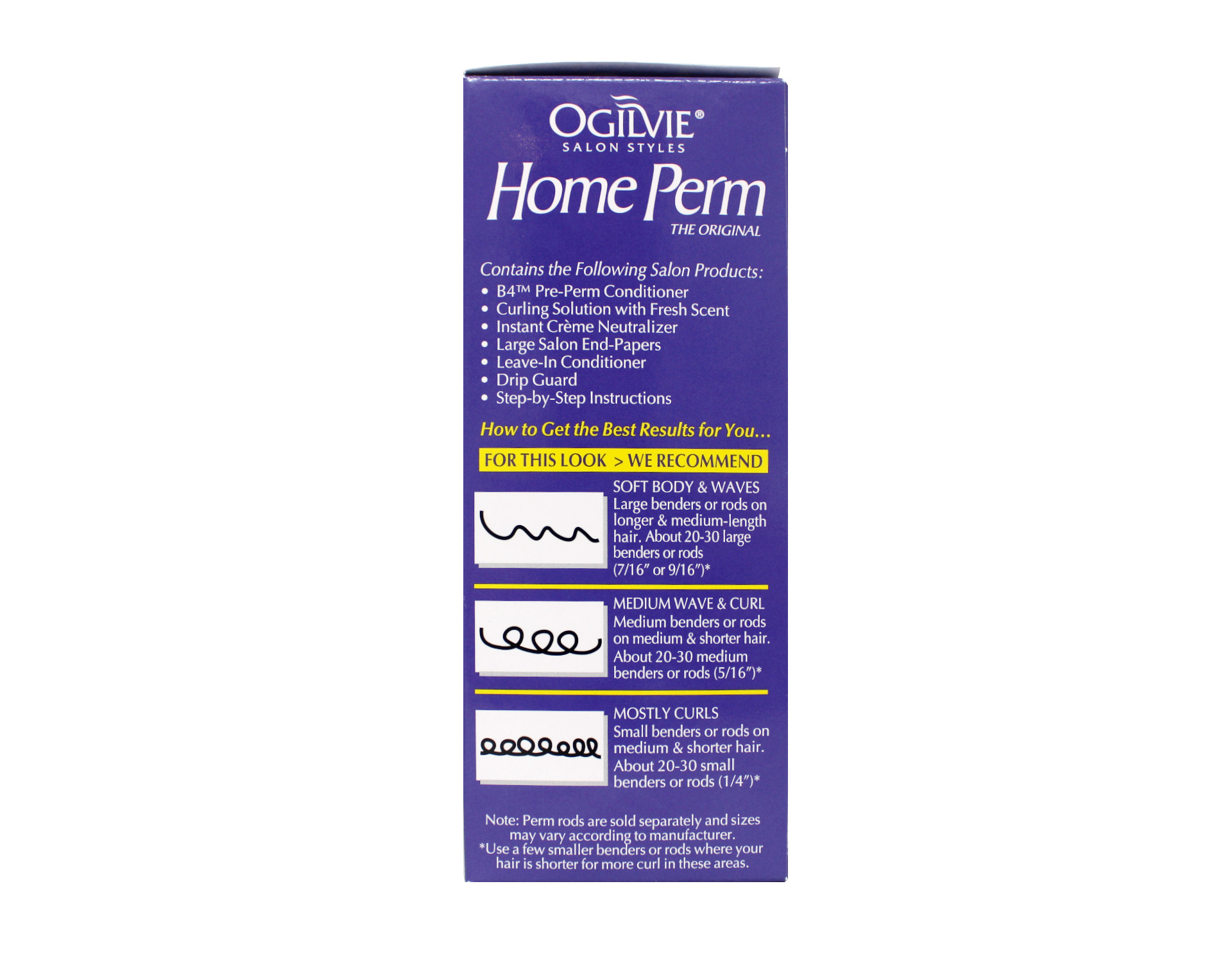 Improved, Auto-Timing, Heat-Activated Conditioning Formula for Faster Results! Now a gentler, more effective formula that turns up the heat on your curls and waves for a just-from-the-salon look. Let the warm, heat-activated waving lotion treat and condition your hair as it gives you long-lasting curls and waves. Built-in conditioners in every step ensure shine and soft results in less time, even for hard-to-wave hair. The Ogilvie Worry-Free, Auto-Timing formula helps. For Color Treated, Thin or Delicate Hair One Time Use/Application Before & After Conditioners with Drip Guard Professional Conditioning Perm Long Lasting Smooth Curls & Waves