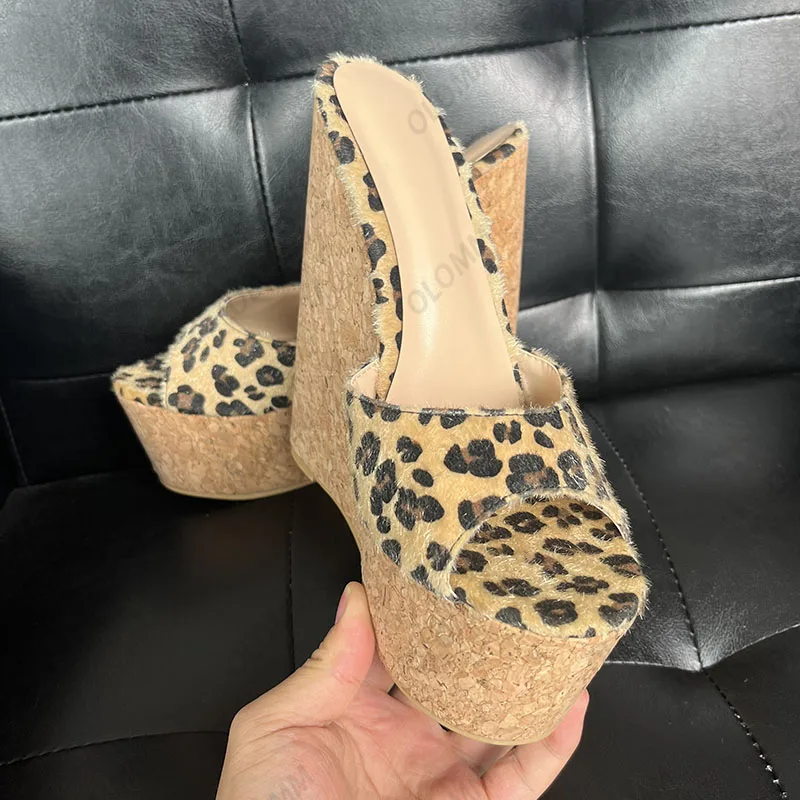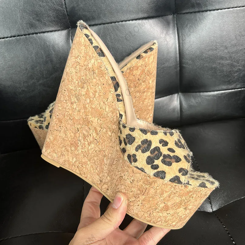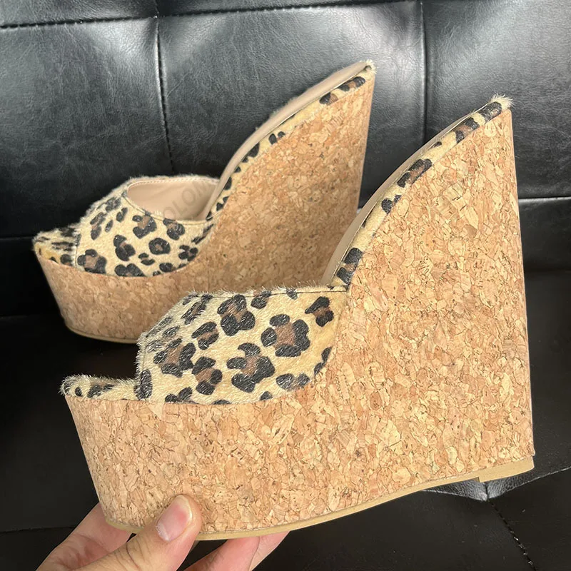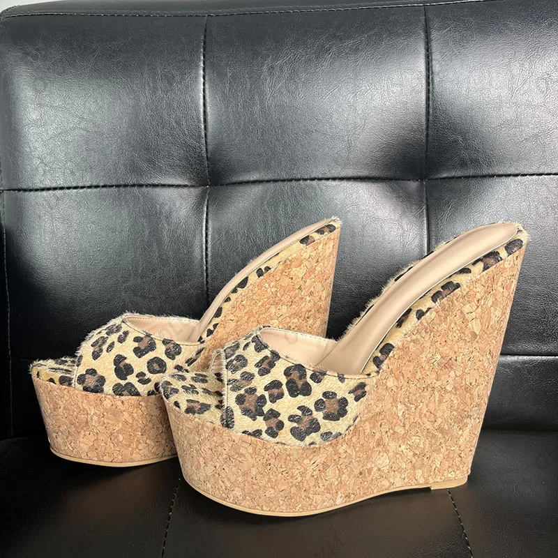 Women Platform Mules Sandals Sexy Wedges Heels Peep Toe Leopard Cosplay Shoes Payment