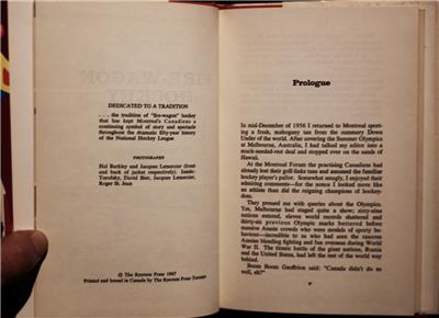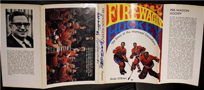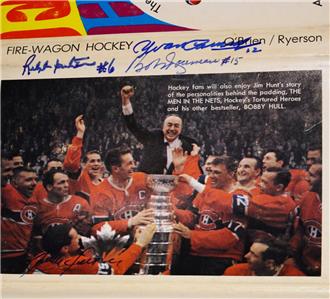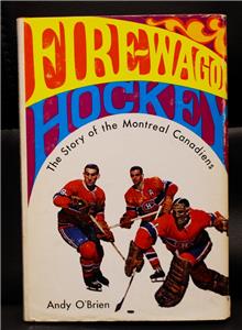 Vintage 1967 Firewagon Hockey: The story of the Montreal Canadiens by Andy O'Brien. First Edition hardcover with dustjacket, in very nice condition with some light wear to the jacket and a small tear on it near the bottom of the front flap. Has been signed by Yvan Cournoyer, Bobby Rousseau, Ralph Backstrom, and Claude Larose. Authenticity guaranteed and comes with my own COA. Free Shipping in North America.