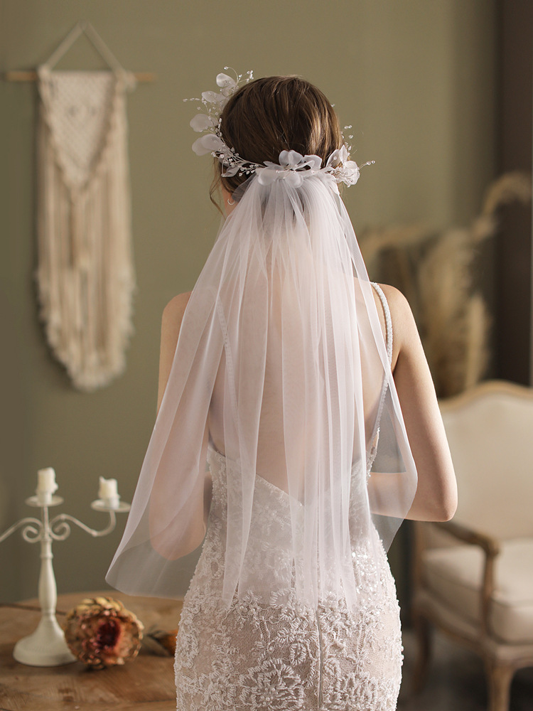 Off White Flower Wreath Bridal Short Soft Mesh Veil Wedding dress Accessories