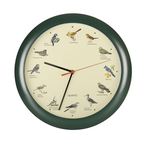 13 Inch Green Bird Singing Clock for Home or Office Room Decorative