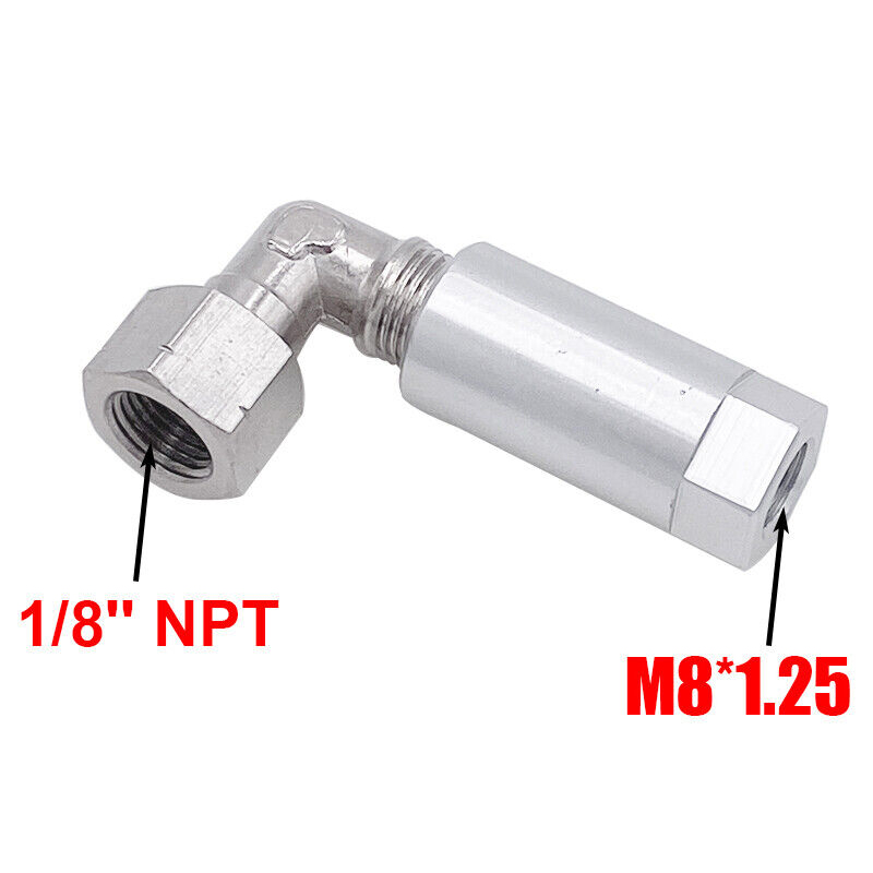 6) EFI Fuel Rail Pressure Gauge Adapter allows for a plumbing connection directly to the vehicle s fuel system service port schrader valve. Ideal for connecting remote fuel pressure gauges or an easy access fuel connection without modifying the fuel lines. Does not require removal of the service port's internal Schrader valve.