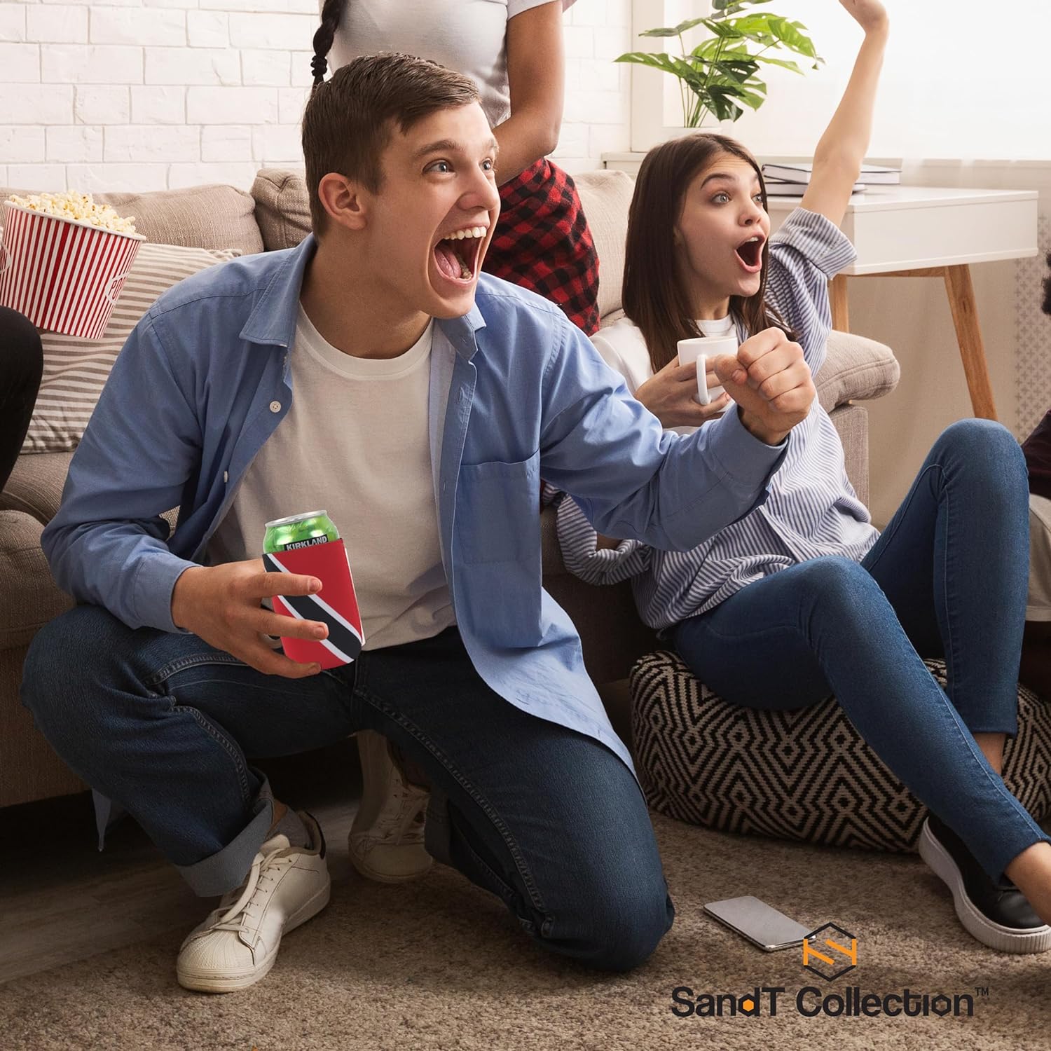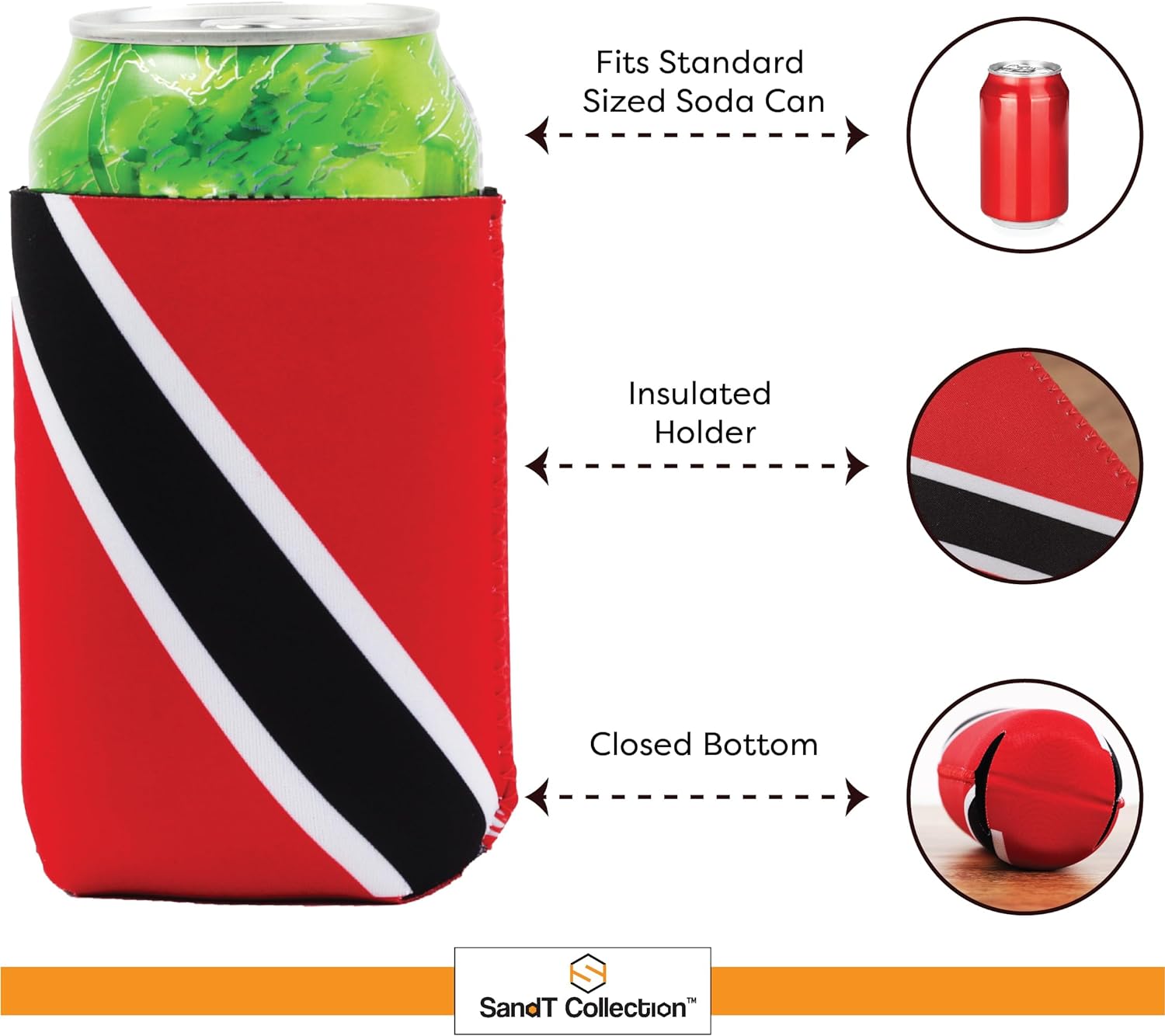 The Trinidad Flag Can Cooler Sleeve is the perfect accessory for parties and gatherings. It fits most cans, making it ideal for beer or soda. Made from durable materials, this can cooler keeps drinks cold while also protecting your hands from condensation and heat. Easy to use and store in small spaces, the country flag can sleeve is a great way to show off your national pride while keeping beverages at their optimum temperature! This can koozies will make any gathering more enjoyable with its convenient design that fits all standard-sized cans - perfect for any occasion!