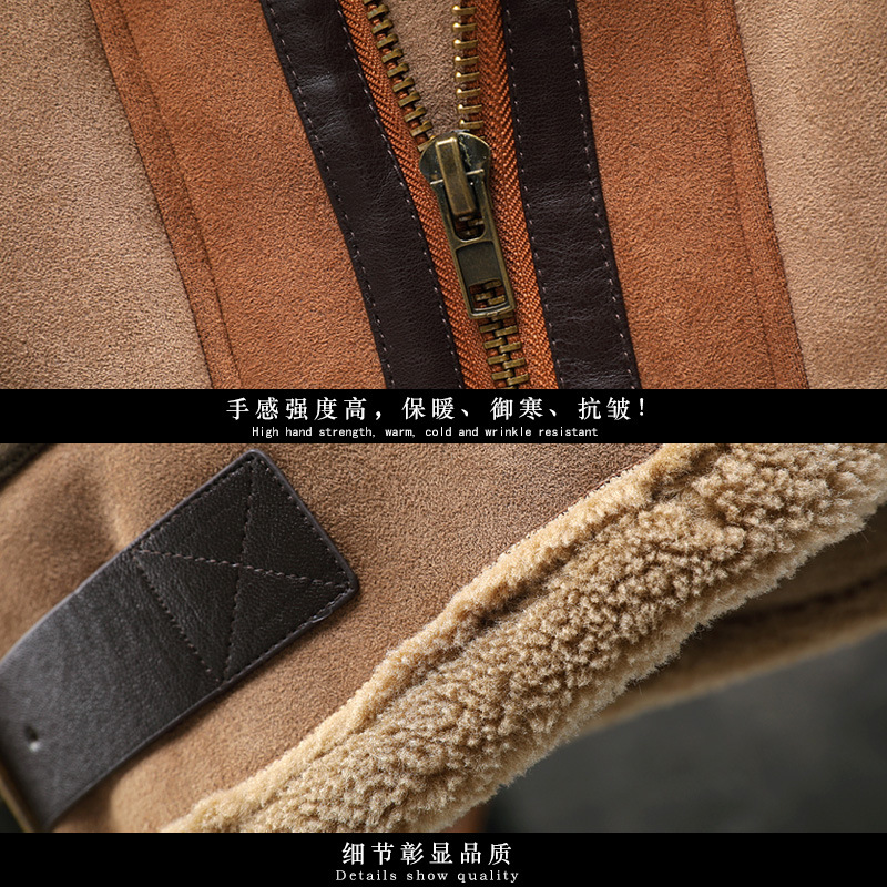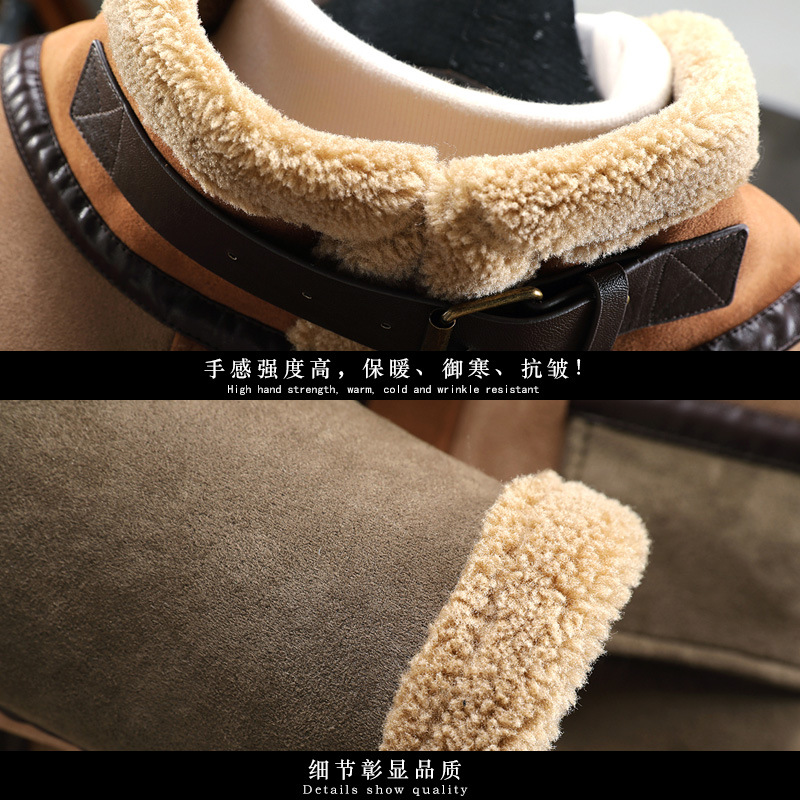 Men Suede Spliced Jacket Lapel Thickened Casual Overcoat Winter Zipper Plus Size