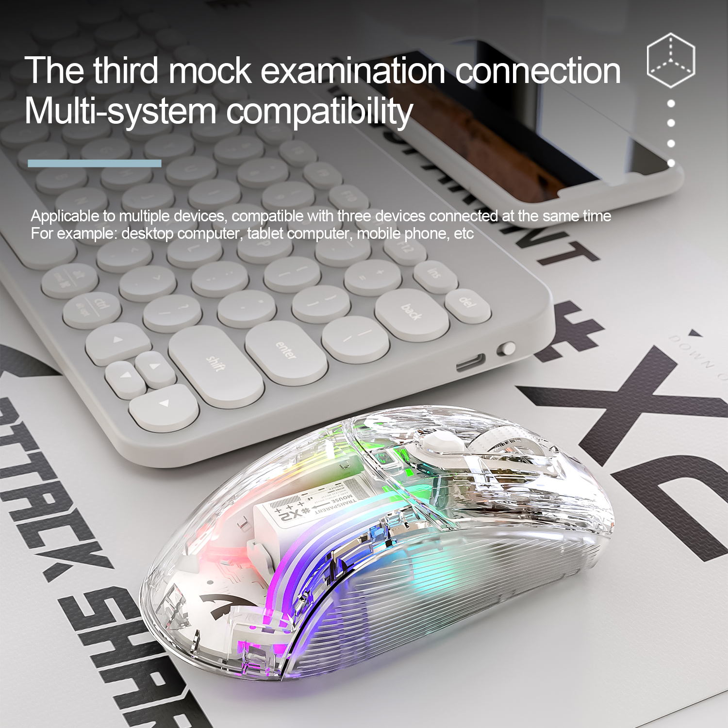 Suitable for a variety of devices, compatible with three devices connected at the same time, such as: desktop computers, tablet PCs, cell phones, etc.