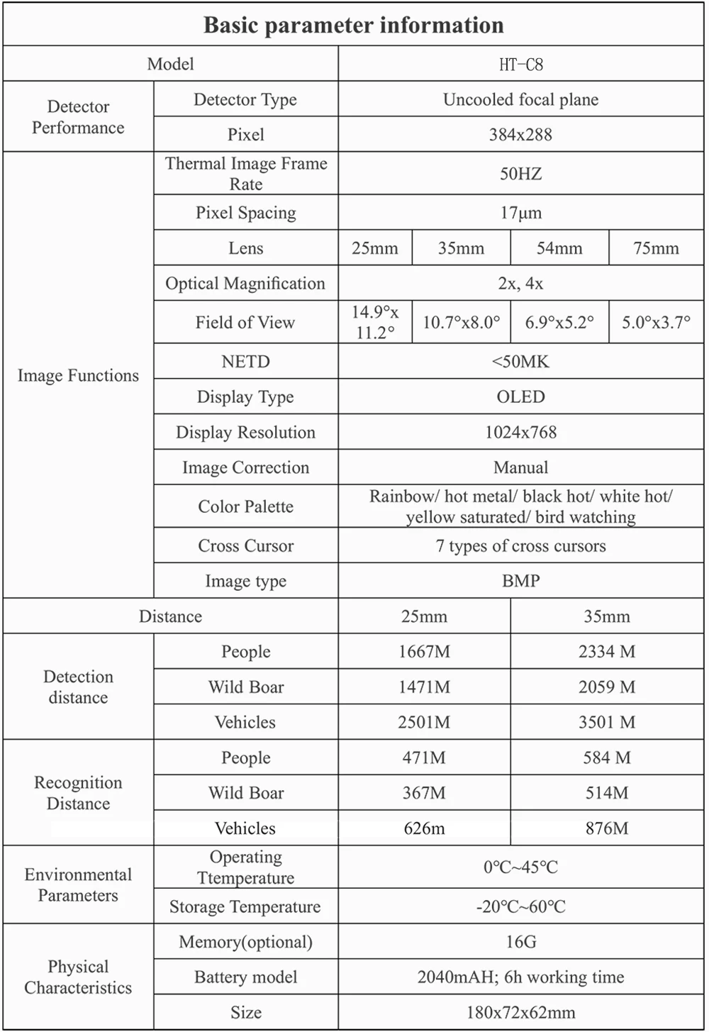 Hot Selling HT-C8 35mm Lens Hunting Thermal Imaging Telescope, with Night Vision Monocular Hunting