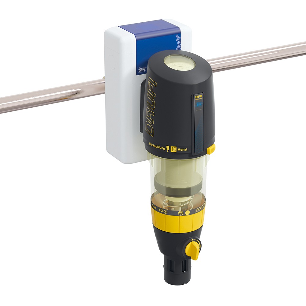 Leckageschutz für den zentralen Hauswasseranschluss von SYR. Der SafeTech Plus Connect Leckageschutz kann auf einem Universalflansch alleine oder in Kombination mit dem DRUFI FR, DFR+, sowie mit einer Syr Lex Plus 10 Connect S Wasserenthärtungsanlage kombiniert werden. Das heisst auf dem Universalflansch können bei Bedarf bis zu 3 Geräte kombiniert werden.