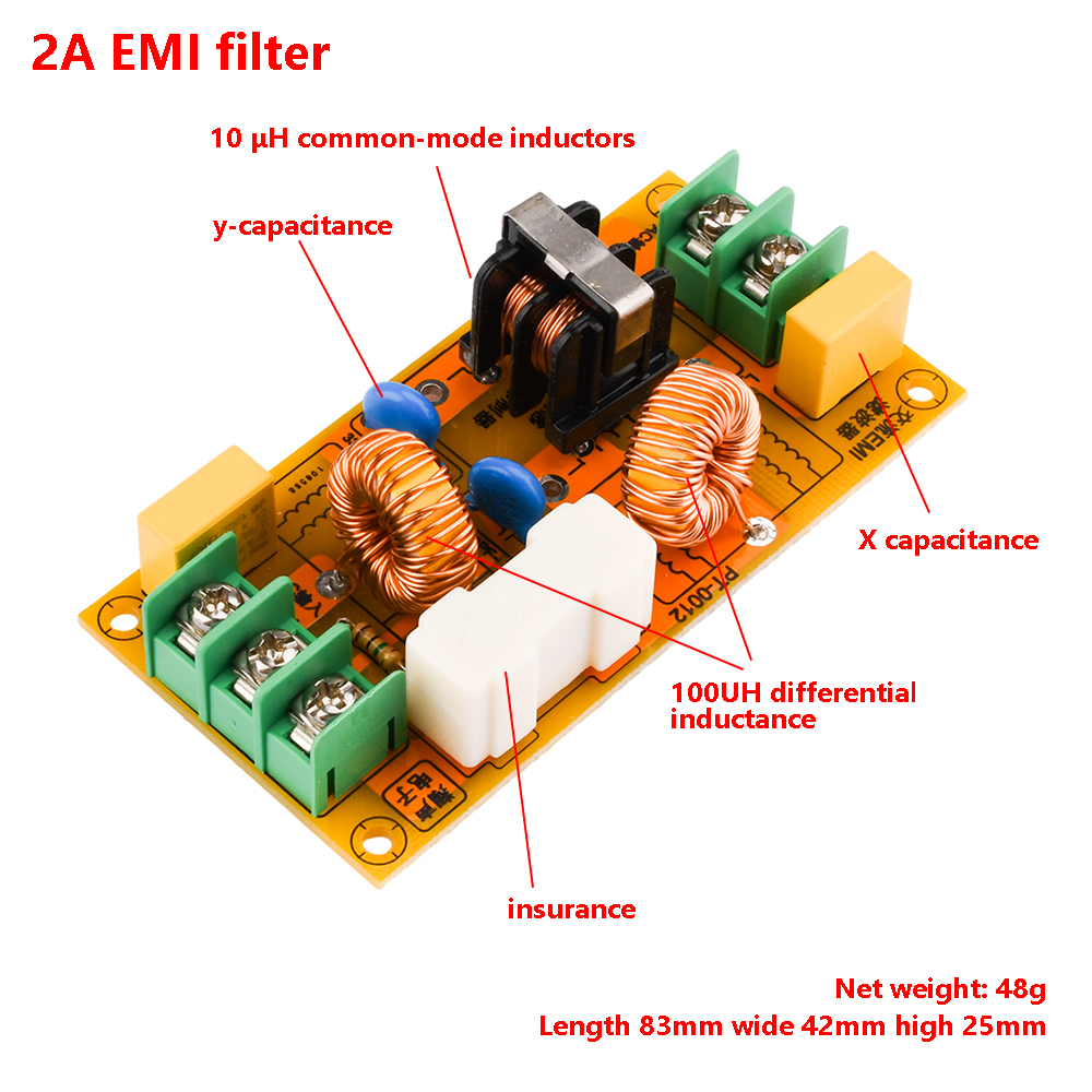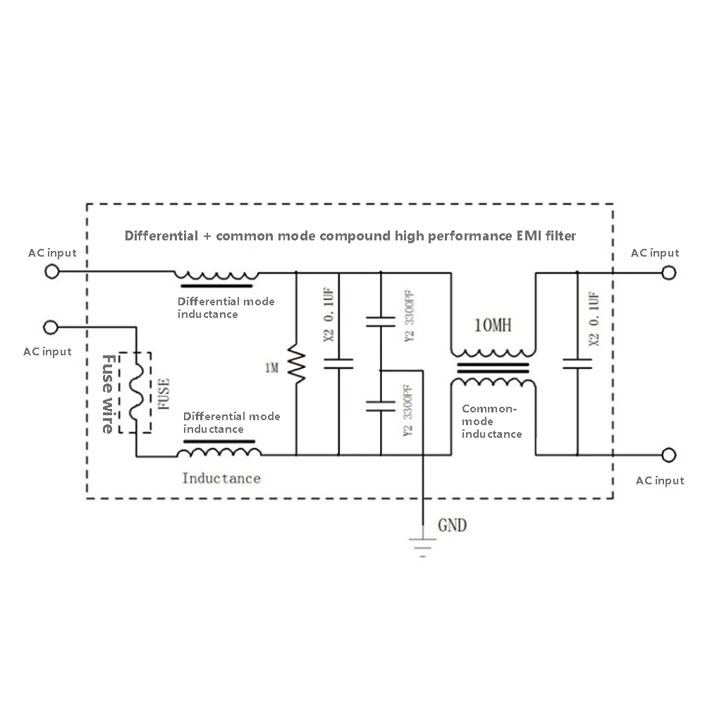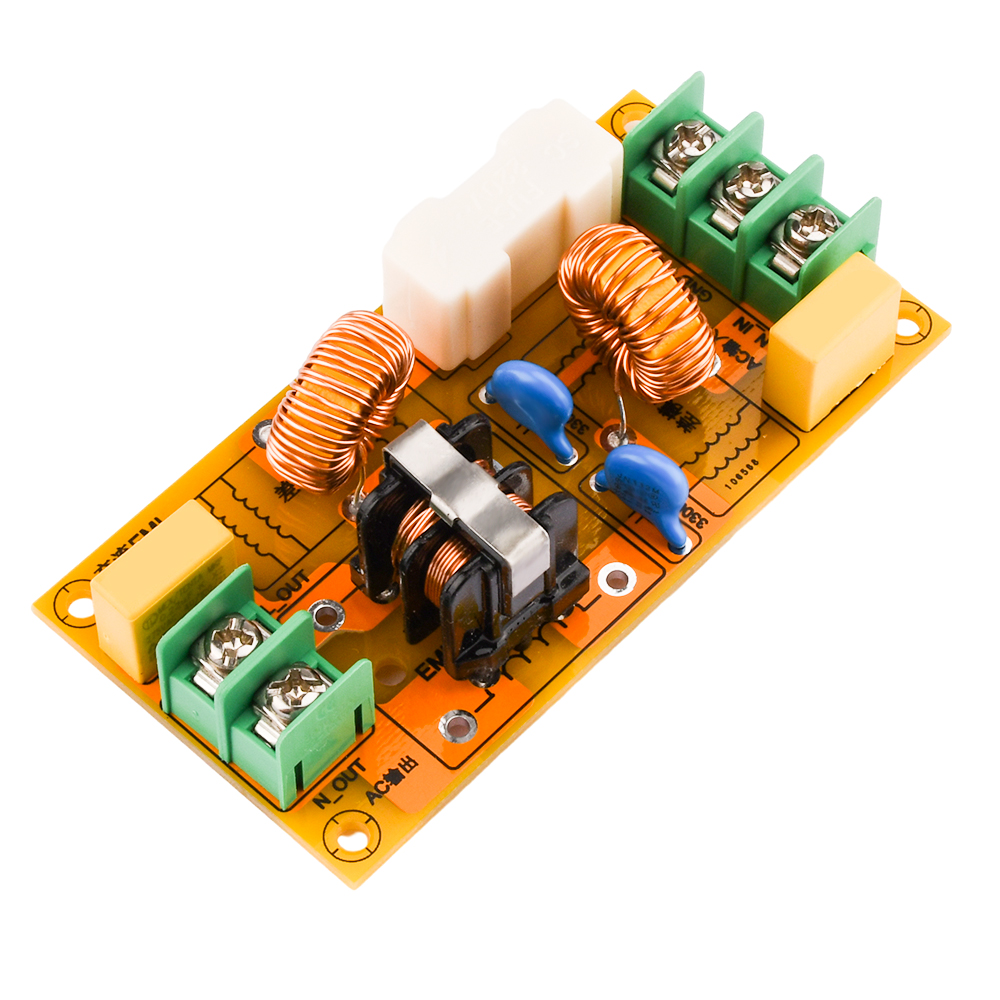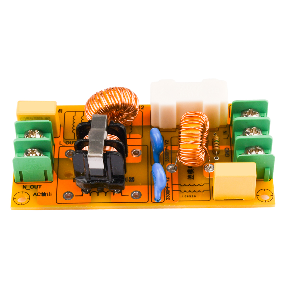 2A and 4A filters with 5A fuse as standard, 10A and 20A filters with 20A fuse as standard. This module can be used with decoders or amplifiers to filter high frequency noise from the power supply, eliminate mains interference, purify the power supply, significantly improve the sound quality of the amplifier, enhance the resolution and make the background quiet. The input GND needs to be connected to the ground of the power line, and can also be connected to the chassis shell again.