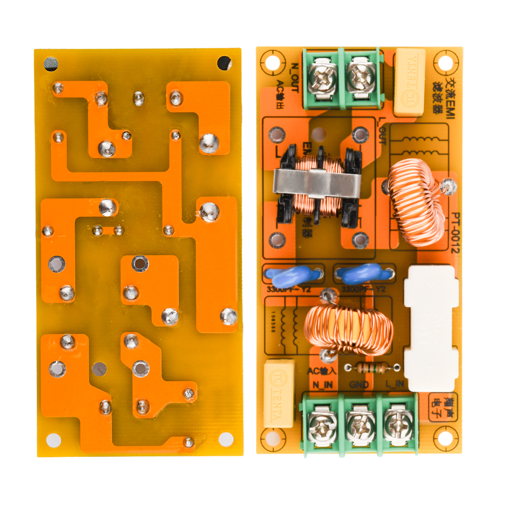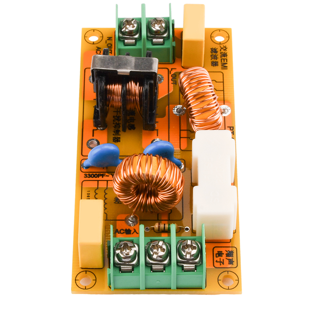 High-frequency electromagnetic interference EMI filter common sense: for high-frequency electromagnetic interference ( EMI), the general three techniques can be power supply filtering, can suppress interference noise, in practice, often a mixture of two of them, or even a variety of techniques. They are: 1. power supply between the fire wire and zero line to add capacitance, that is, X capacitor. The main function is to eliminate common mode interference, with a capacity range of 0.01UF - 0.47UF. 2.The capacitor is added between the power line and the ground line, i.e. the Y capacitor. The main function is to eliminate series interference, the capacity range is 2200pF~0.1μF. In order to reduce leakage current, the capacitance should not exceed 0.1μF, this board choose 3300PF. 3. common mode suppression, common mode inductor (two power lines on the suppression coil), when the rated current is larger, common mode choke wire diameter should be increased accordingly, in order to be able to withstand the larger current. In addition, an appropriate increase in inductance can improve the low frequency attenuation characteristics.4. Differential touch suppression, differential touch inductance, suppressing series mode interference between power lines.