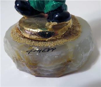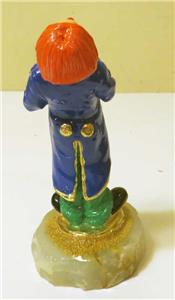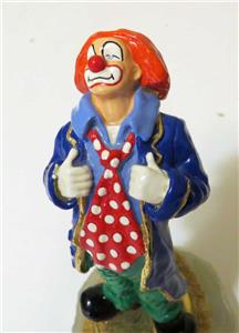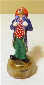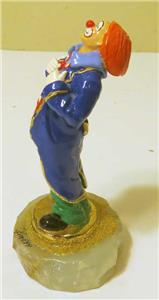 STANDING PROUD' RON LEE CLOWN, 24KT GOLD & POLKA DOTS, 5," WITH 24K GOLD ACCENT, installed on the heavy onyx base.