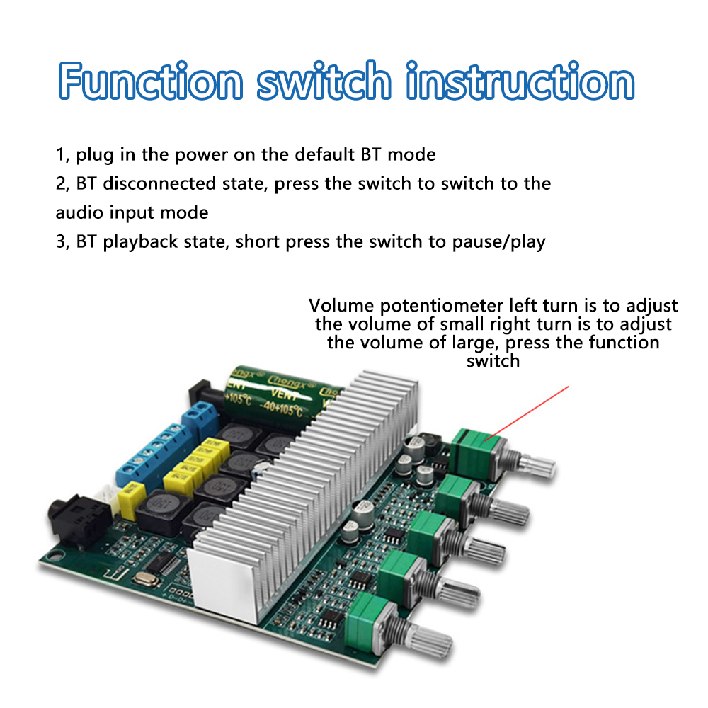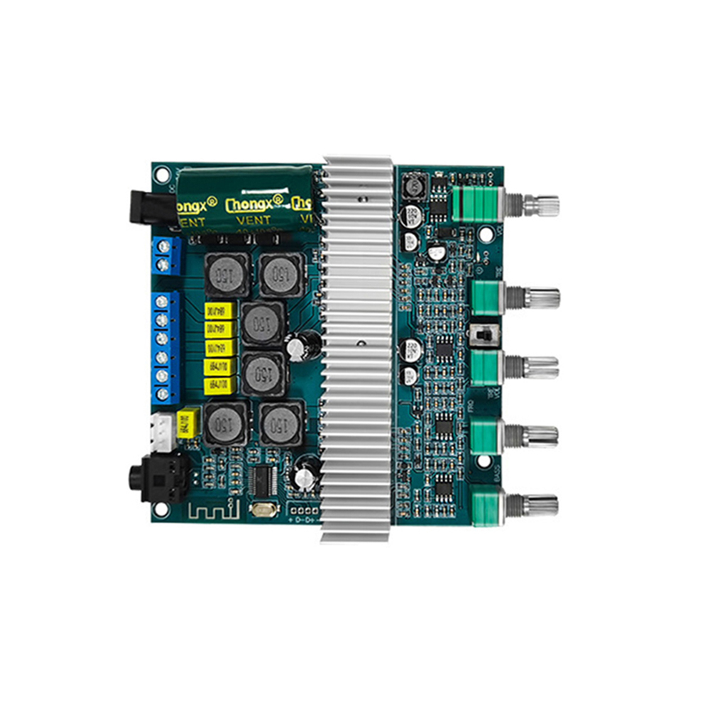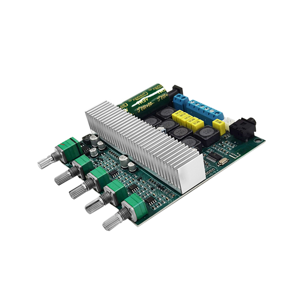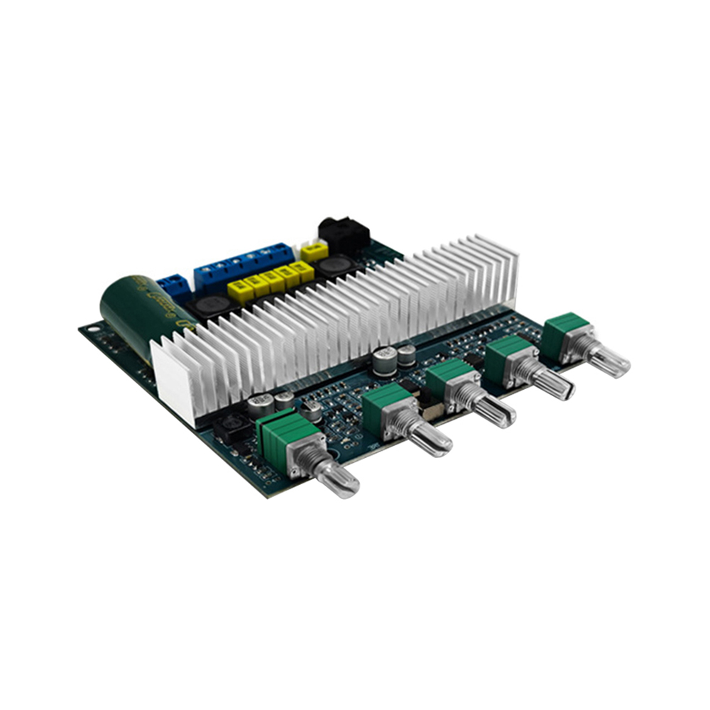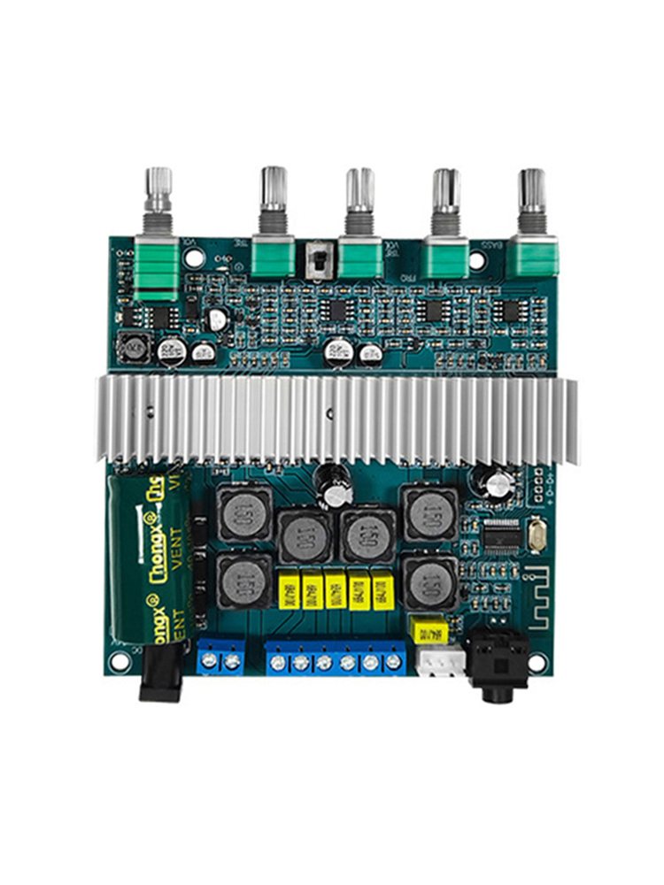 3. Support Bluetooth audio reception, external audio input interface, with preamplification, bass crossover processing; bass volume, bass frequency, left and right channel volume, treble, function control switch/total volume, 5 adjustment potentiometer