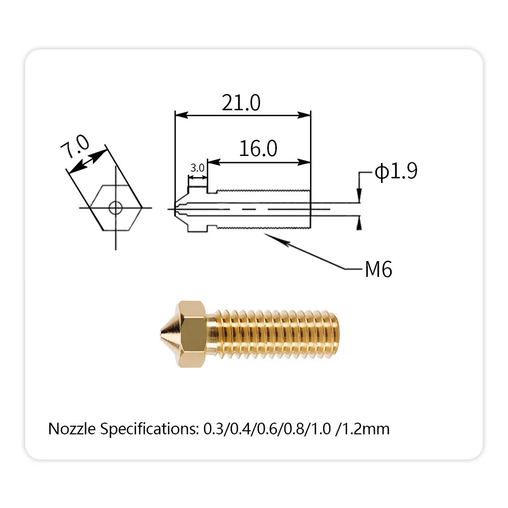 Nozzle:0.4mm volcano brass nozzle(installed on the print head)