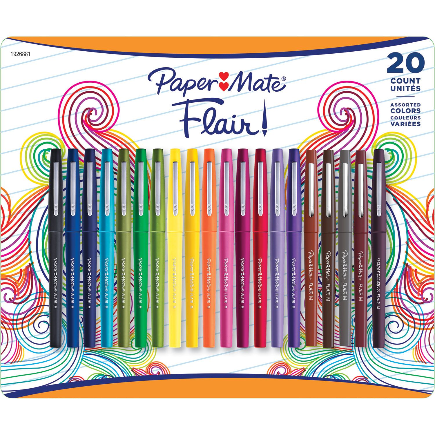Paper Mate Flair lets you express yourself with true style and colors. The 20-pack felt tip pens comes in a large assortment of colors and can be used in a variety of everyday writing uses. This item is NEW.