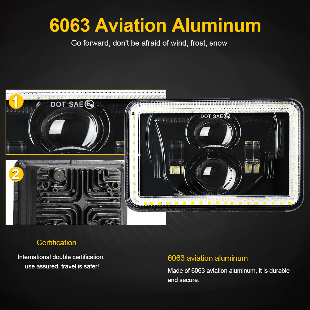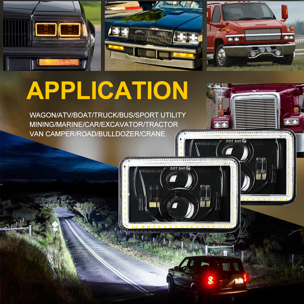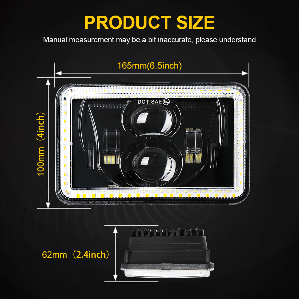 - Built-in Anti-flicker with 4 Beam Patterns: 4X6 rectangle led headlights with High Beam, Low Beam, White DRL Day time Running light and Amber Turn Signal Light