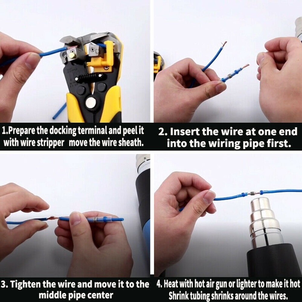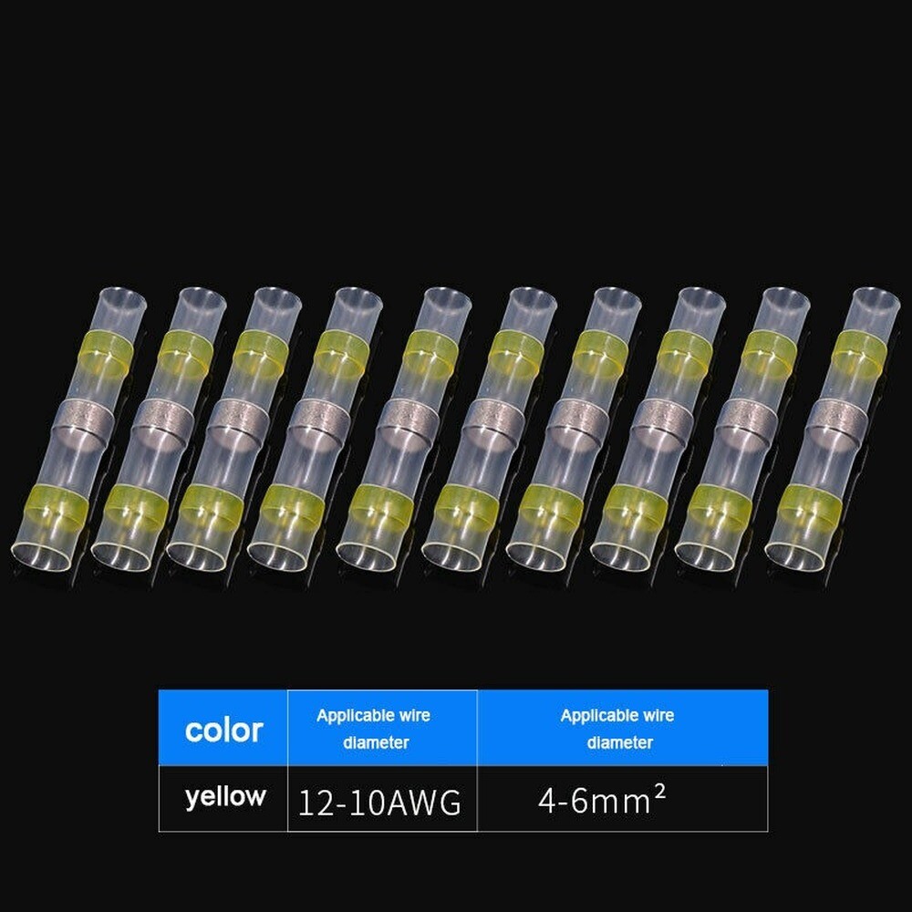 Features: An easy one step connection of wires, soldered, insulated and sealed. Can be used in marine and automobile applications. Polyolefin tubing in outside and hot melt adhesive in inside. Solder and seal and with advanced waterproof function. Polyolefin heat shrink butt connectors improved pullout strength, provides seal, strain relief, cable check, and insulation.