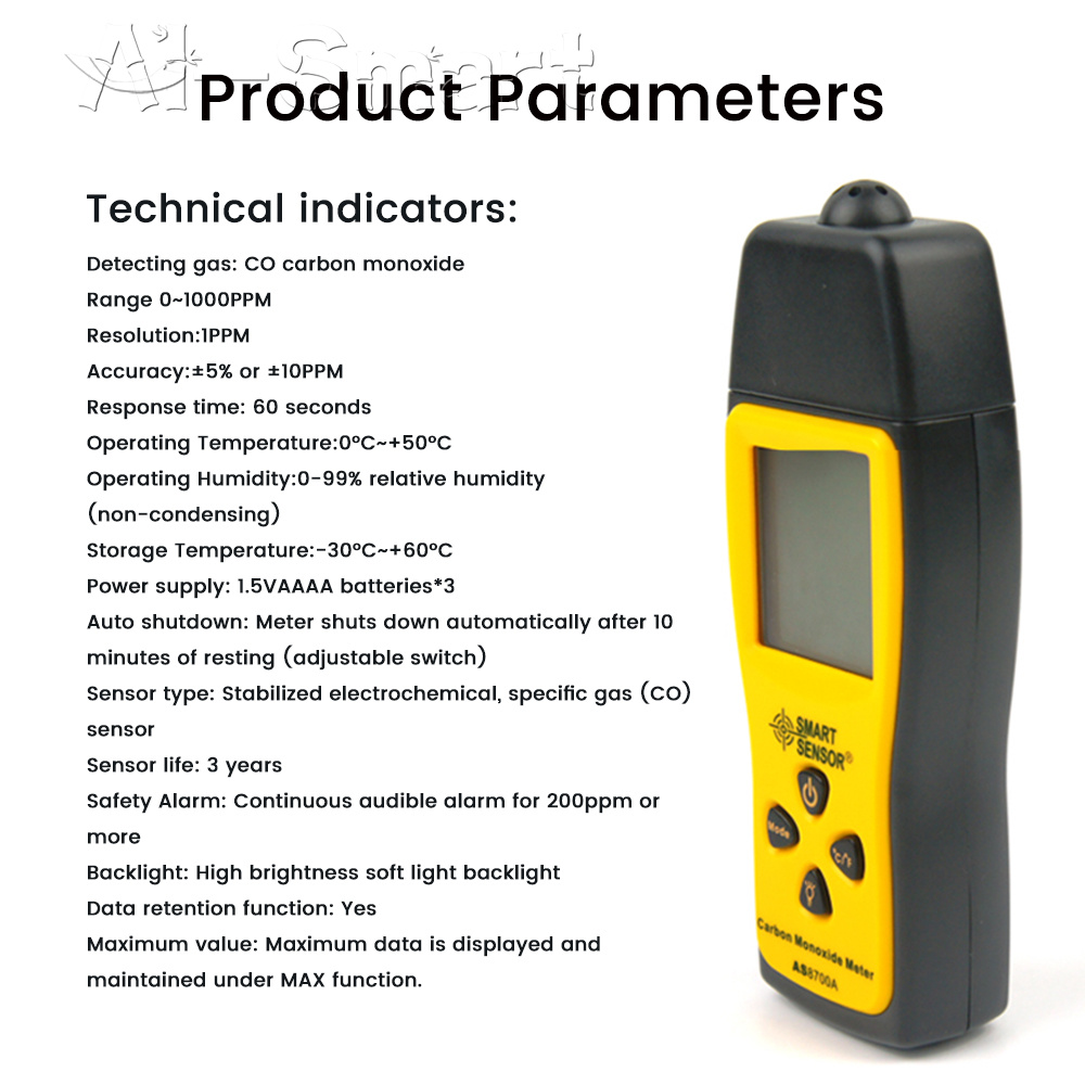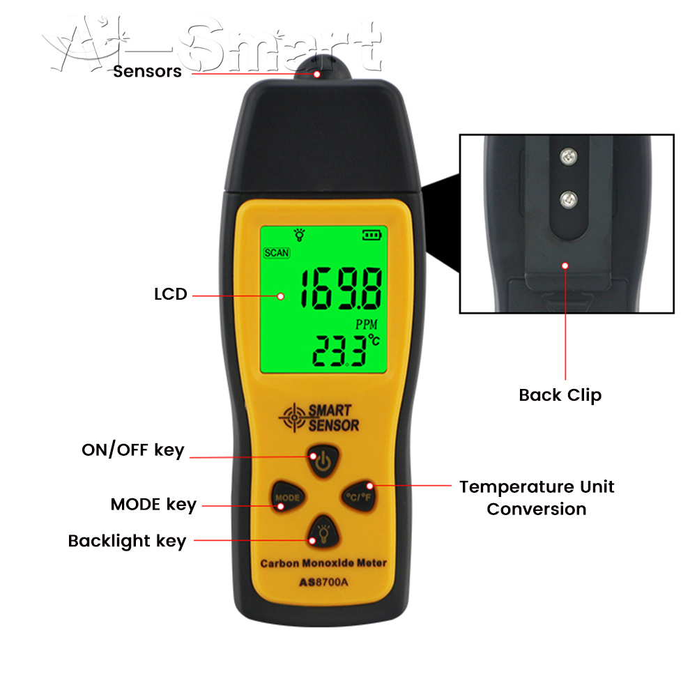 Handheld Carbon Monoxide Meter Portable High Precision CO Gas Tester Detector