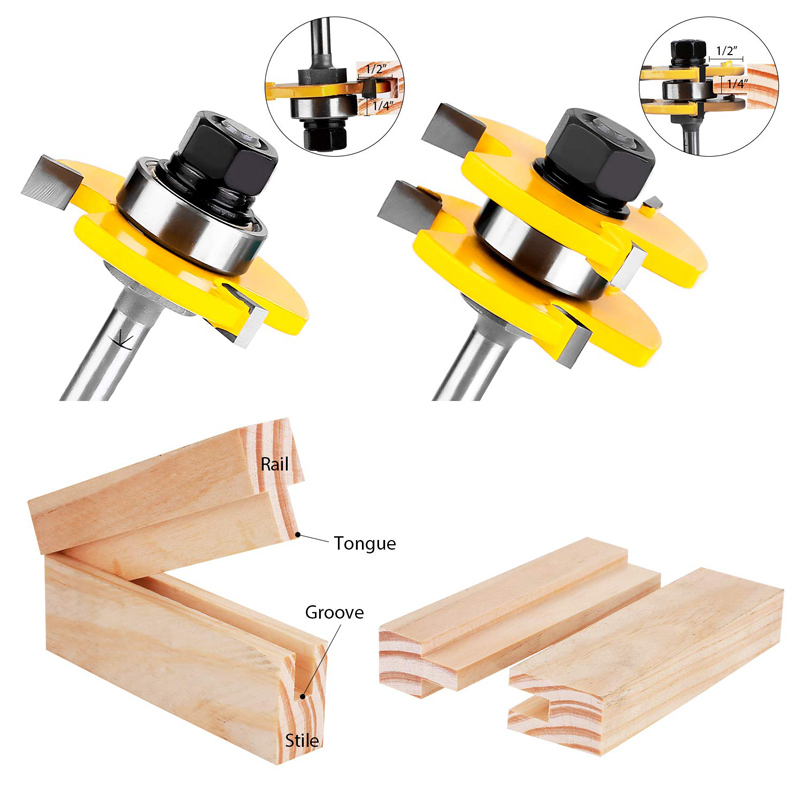 【PREMIUM MATERIAL】 Solid hardened steel bodies with anti-kickback design 3 teeth T-shape for safe installation, a dependable tongue and groove router bit for your woodworking projects.