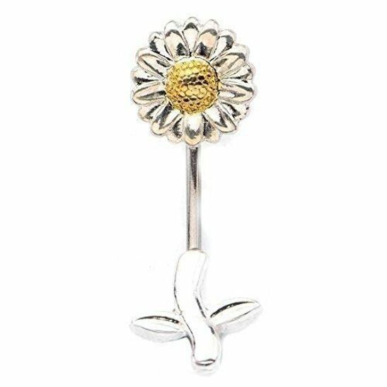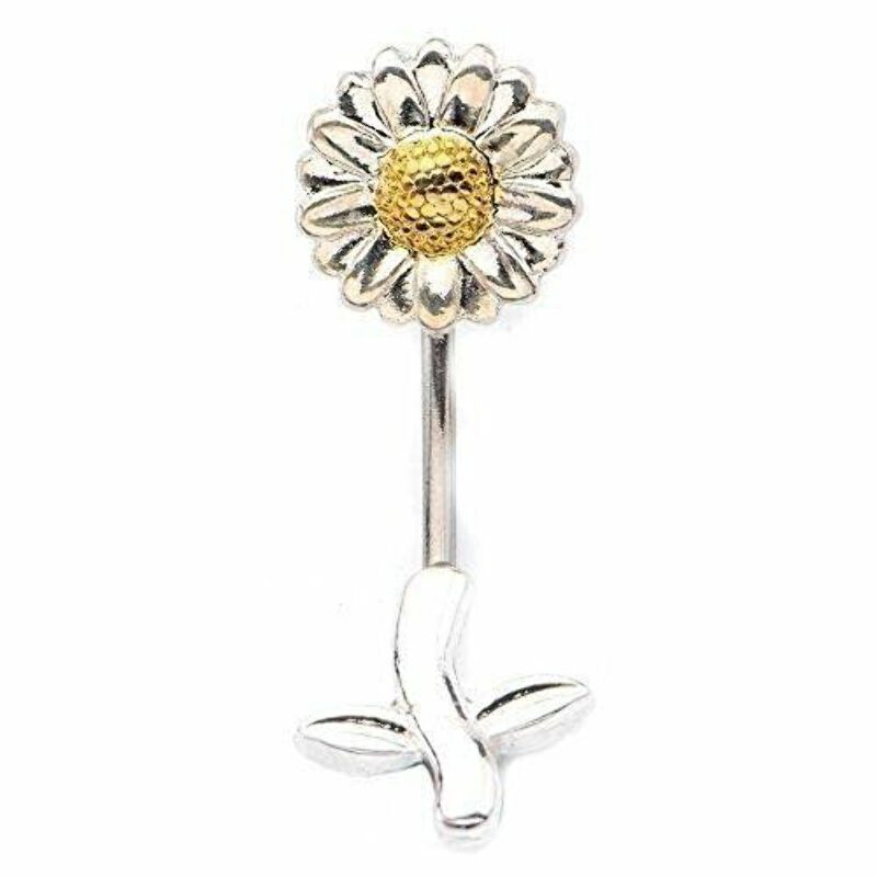 316L Surgical Steel Sunflower Navel Ring 316L Surgical Steel Reverse Style Belly Ring. Sun flower Top Down Navel Ring. . Thickness : 14 GA / 1.6mm Length : 3/8” / 10mm