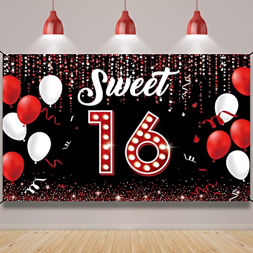 The Sweet 16 Birthday Decorations Banner Package Included 1 x Birthday Party Backdrop Banner 6.1ft x 3.6ft / 185cm x 110cm 1 x Strings 20ft / 6m (strings for hanging) Great Decorations The happy 16th birthday backdrop banner is perfect for girl’s sixteen theme birthday party decorations. It's a great gift for the 16th birthday for the girl. Note There may be slight creases, which will not affect the use; Anti-wrinkle method: Ironing the backside (not the image side) at low temperature can quickly remove creases.