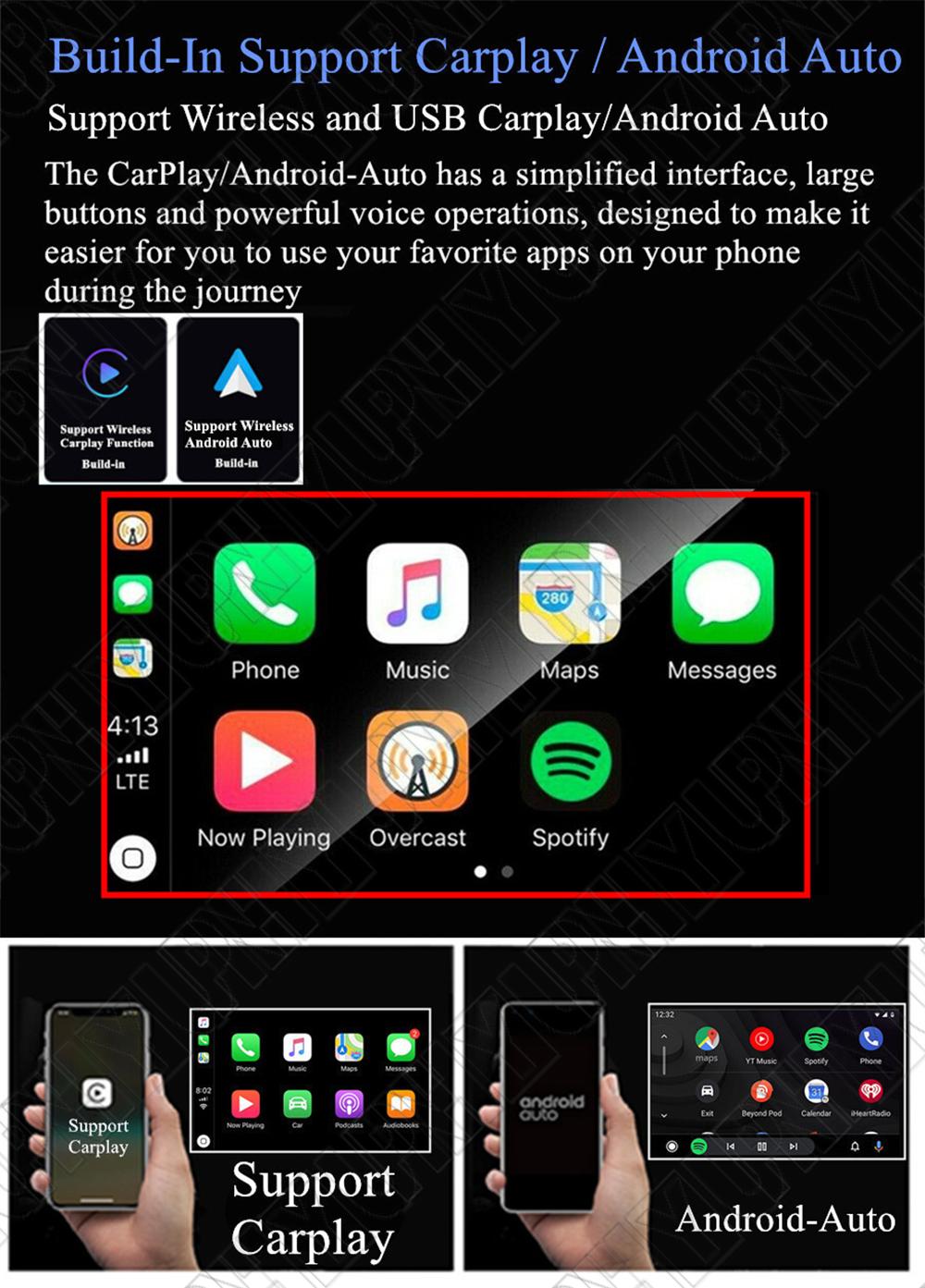 | Support Carplay/Android Auto | -Build-In Support WIFI Wireless & USB Wired Carplay And Android Auto. |
