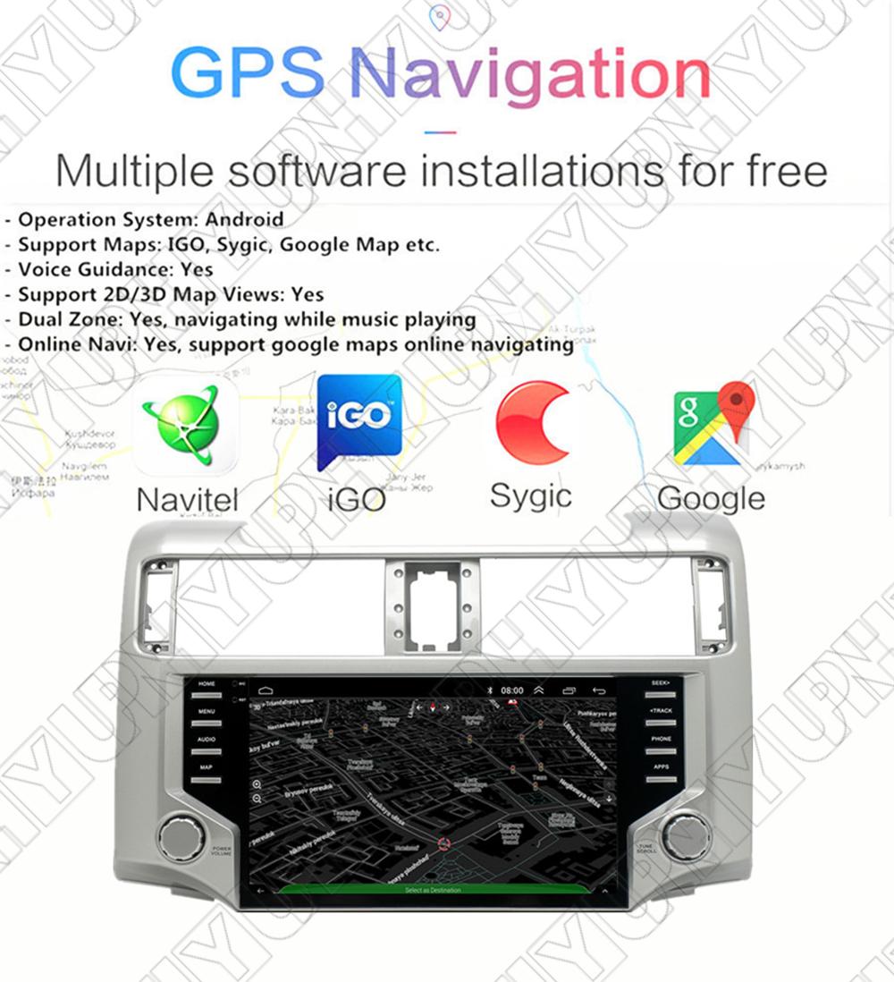 GPS | - Operation System: Android 13 - Support Maps: IGO, Sygic, Google Map etc. - Voice Guidance: Yes - Support 2D/3D Map Views: Yes - Dual Zone: Yes, navigating while music playing - Online Navi: Yes, support google maps online navigating |