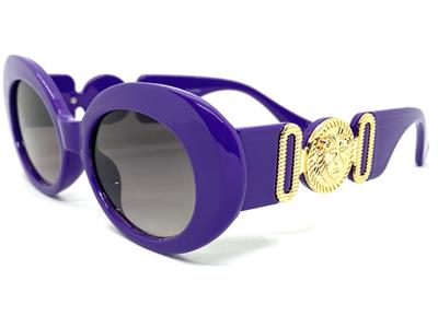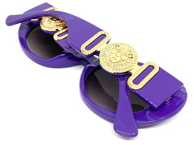 - FRAME COLOR: Purple Frame Accented with a Large Gold Medallion on each side of the Temples