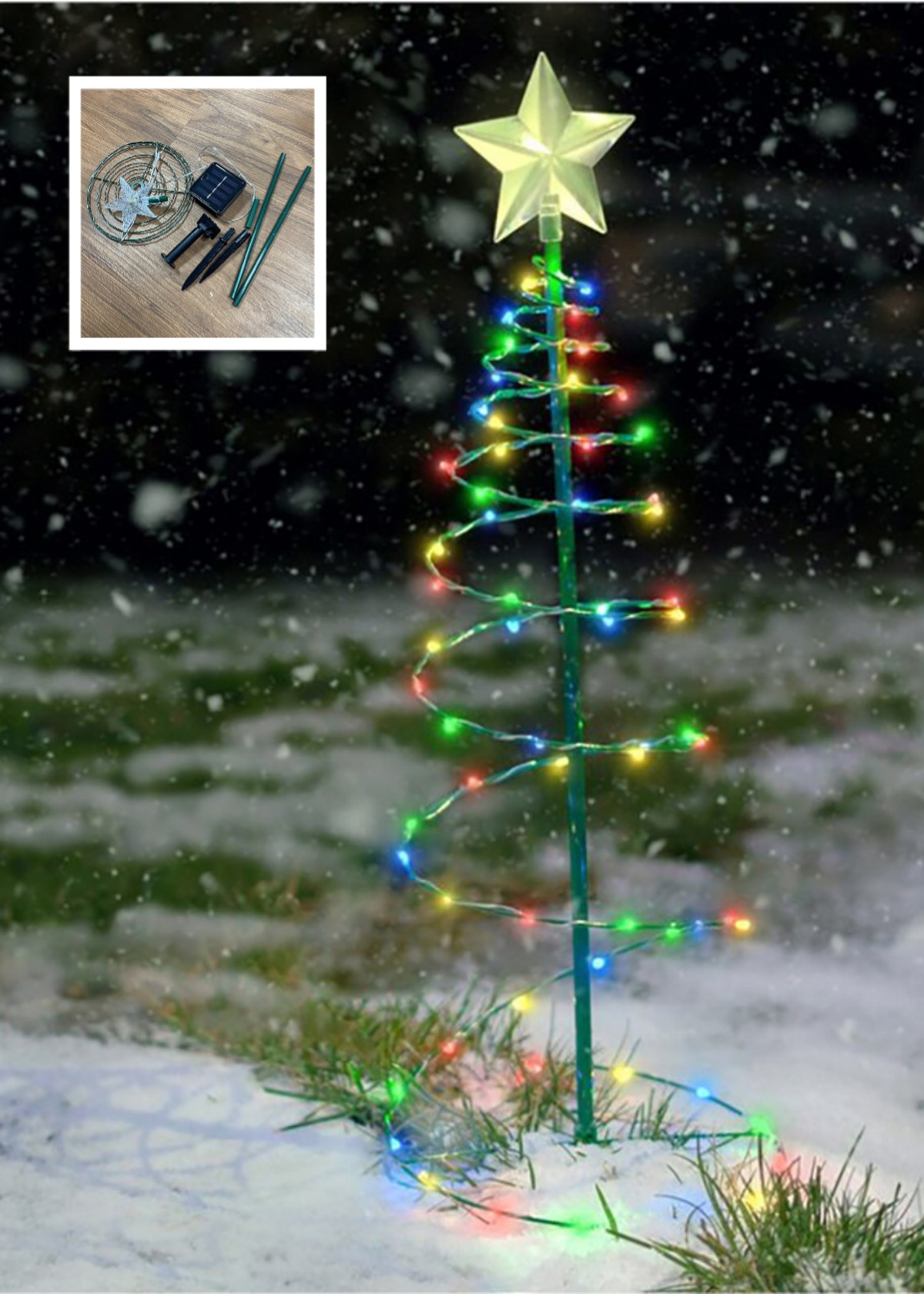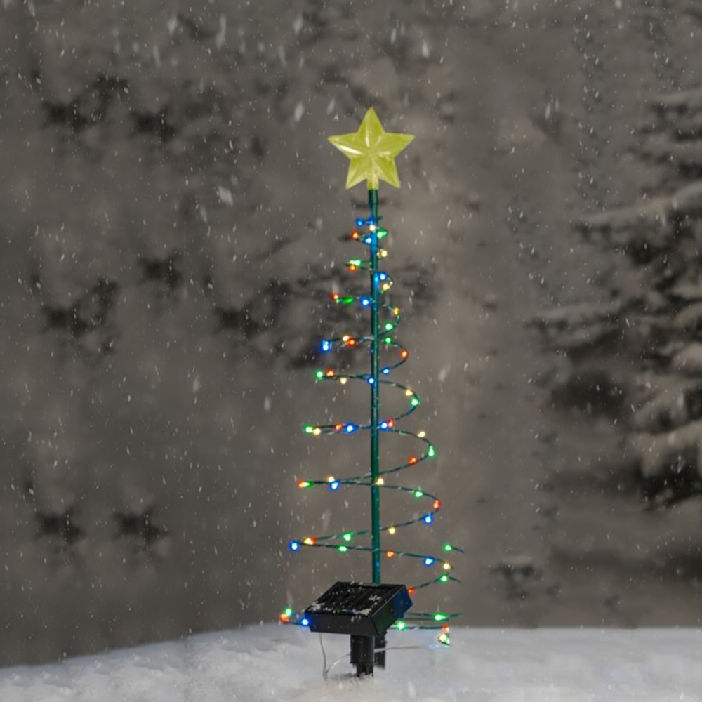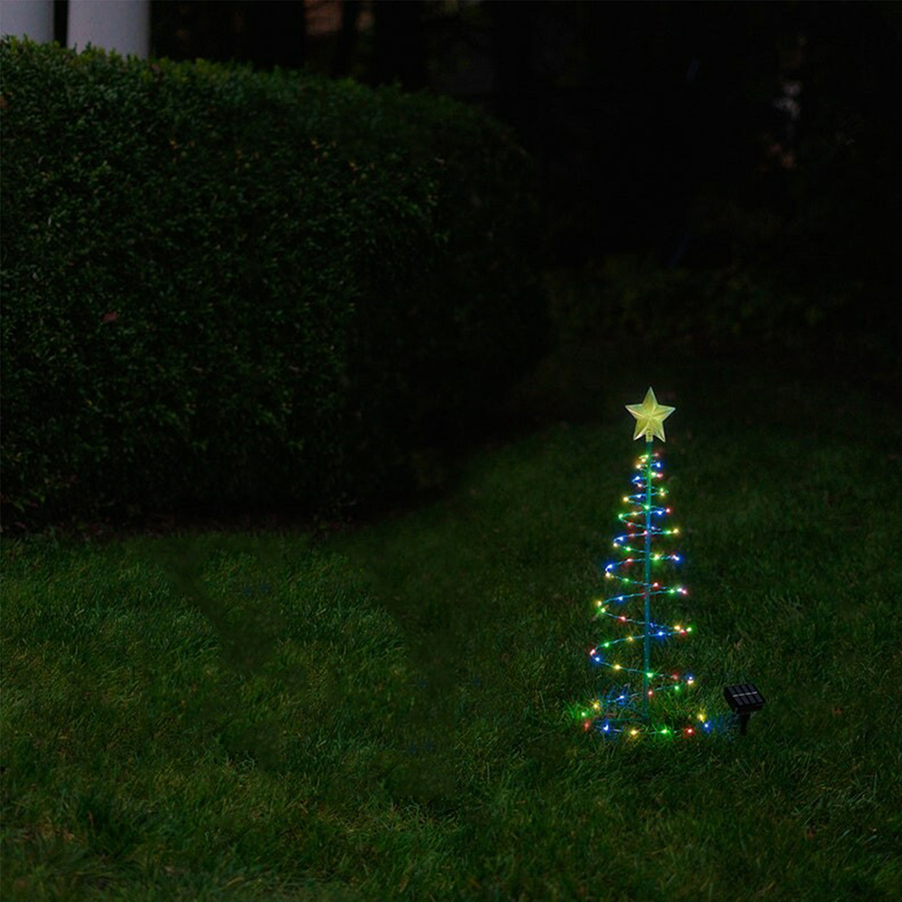 Make your yard a winter wonderland with this solar Christmas tree light. This one of a kind, solar-powered, pre-lit tree is the perfect addition to your holiday decor. Featuring a weather-resistant, durable spiral frame with ultra bright LED lights in either warm white or multi-color and a glow-in-the-dark star topper. This solar Christmas tree light decoration will turn on automatically each night and off during the day to charge. With no wires, batteries, or timers required, the setup is quick and easy. Enjoy your holiday the Eco-friendly way.