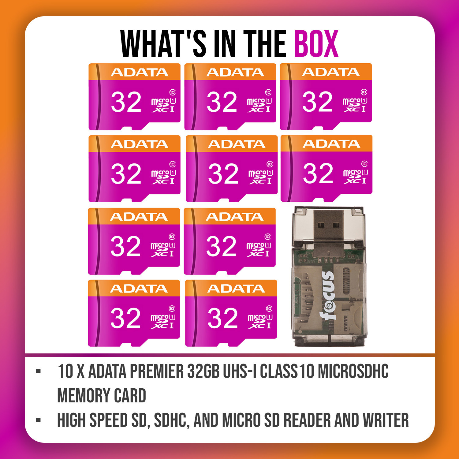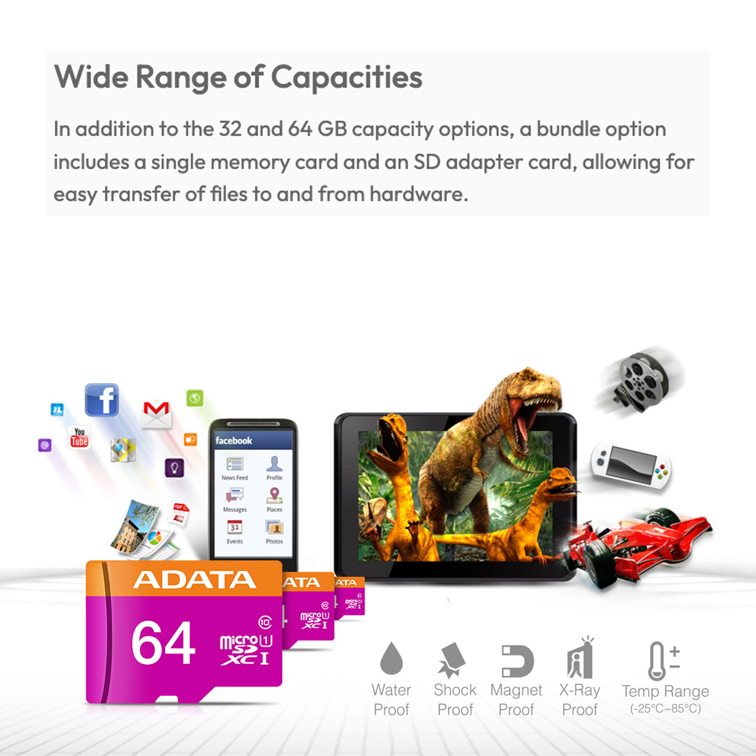 In addition to the 32 GB capacity, a bundle option includes a single memory card and an SD adapter card, allowing for easy transfer of files to and from hardware.