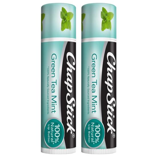 - One 0.15-ounce ChapStick Green Tea Mint 100 Percent Natural Lip Butter