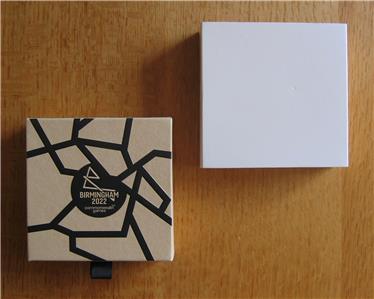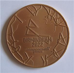 The obverse design has the Birmingham 2022 Commonwealth Games logo surrounded by an abstract design of thick straight lines and thin wavy lines, which perhaps represents athletes at the Games? The reverse has the Commonwealth Sport logo inside a similar abstract design.