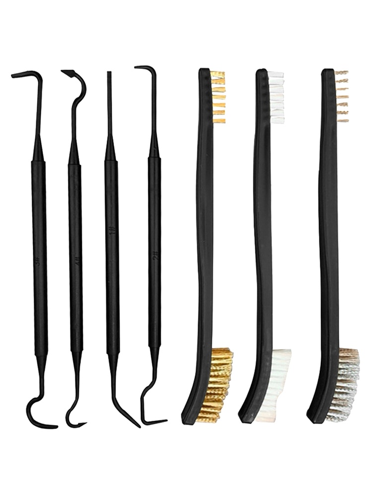 Brass brush*1+Stainless steel brush*1+Nylon brush*1+Double head hook*4