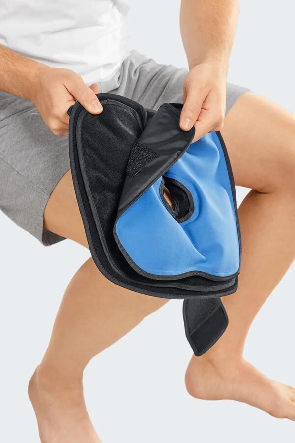 Eine Besonderheit der kurzen Softorthese ist die Kühlfunktion: Dank zweier austauschbarer Gel-Kühlkompressen mit Patella-Aussparung sorgt Stabimed® RICE optional für eine Kühlung des Gelenks, was wiederum Schmerzen reduzieren kann. Die Kompressen sind anatomisch vorgeformt, im Lieferumfang enthalten und wiederverwendbar.