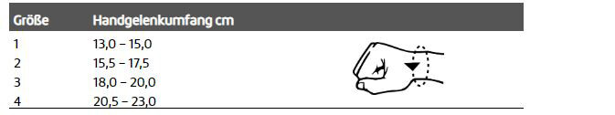 - Immobilisierung des Handgelenkes in Flexion und Extension sowie Ulnar- und Radialabduktion durch volar und dorsal eingesetzte Stabilisierungselemente und Daumenfixierung.