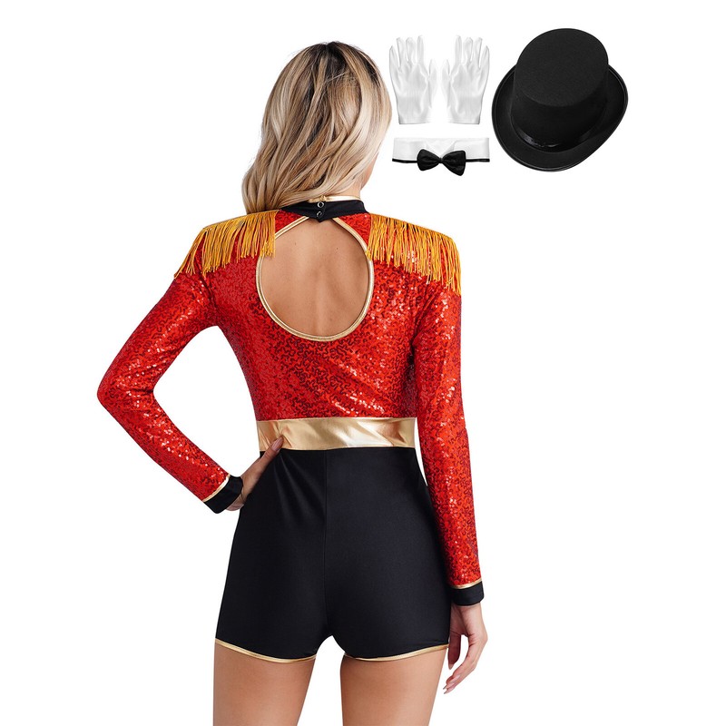 Matching props with hat, bow collar and gloves for a circus look, makes you eye-catching.