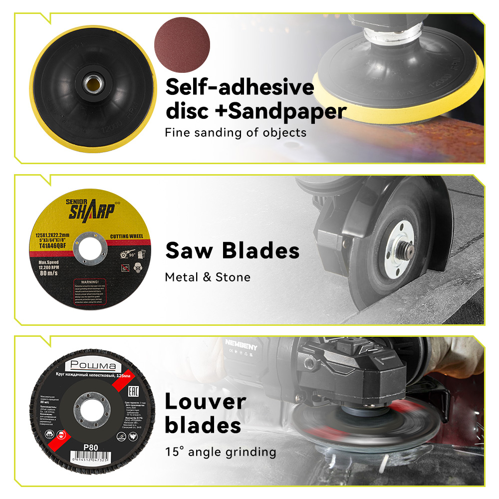 Opzione B: 1 x Smerigliatrice angolare (Senza batteria e caricatore) 8 x Accessori