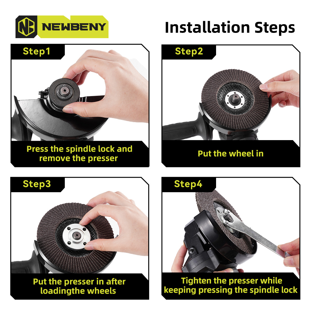 Specifiche: Motore: Motore senza spazzole Velocità a vuoto: 20000r/min Ingranaggio: 3 impostazioni di ingranaggio Diametro del mandrino: 14 mm Diametro mola: 125 mm