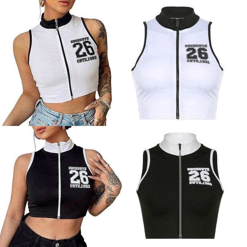 Sleeveless and mock neck, solid color, designed to make you look slimmer.