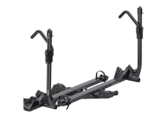 The StageTwo is built to carry your valuable steeds anywhere you need to go, securely and in style. From road to mountain and kids to fat bikes the StrongArm hook quickly secures your bike. The stadium seating tiered architecture increases ground clearance on rutted trails or steep driveways. While the offset tray design further minimizes bike to bike interference and maximizes functionality. The Tool-free locking SpeedKnob™ 2.0 makes install easier than ever, and the forward-facing remote tilt lever means fast access to the rear of your vehicle and integrated locking cables, combined with the ability to add your own lock, provide serious security.